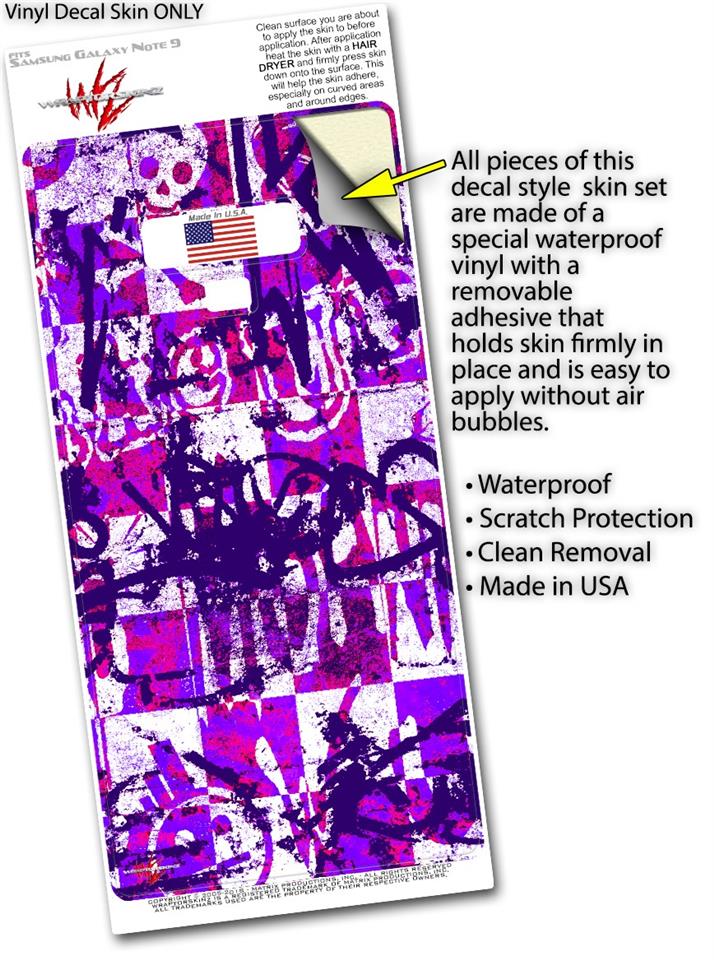 Decal style Skin Wrap compatible with Samsung Galaxy Note 9 Purple Checker Graffiti