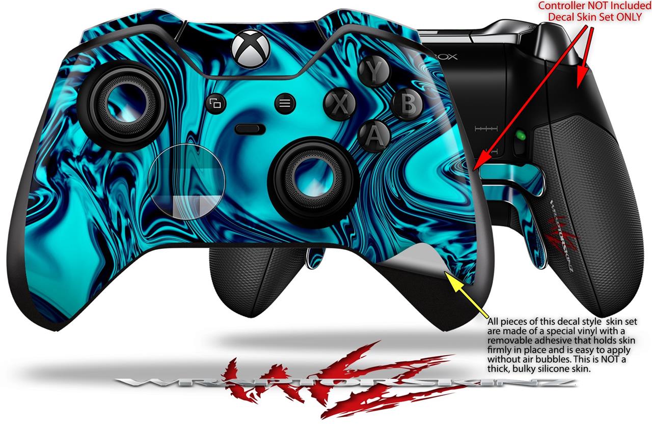 Decal Skin compatible with Microsoft XBOX One ELITE Wireless ControllerLiquid Metal Chrome Neon Blue