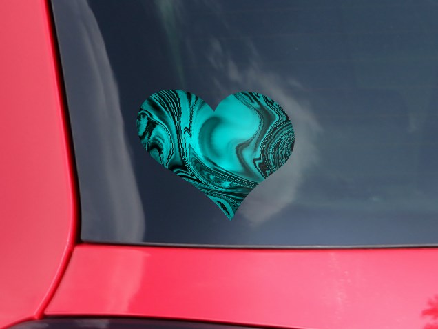 Liquid Metal Chrome Neon Teal - I Heart Love Car Window Decal 6.5 x 5.5 inches