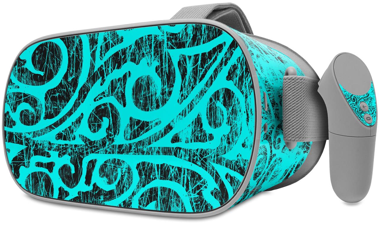 Decal style Skin Wrap compatible with Oculus Go Headset - Folder Doodles Neon Teal (OCULUS NOT INCLUDED)