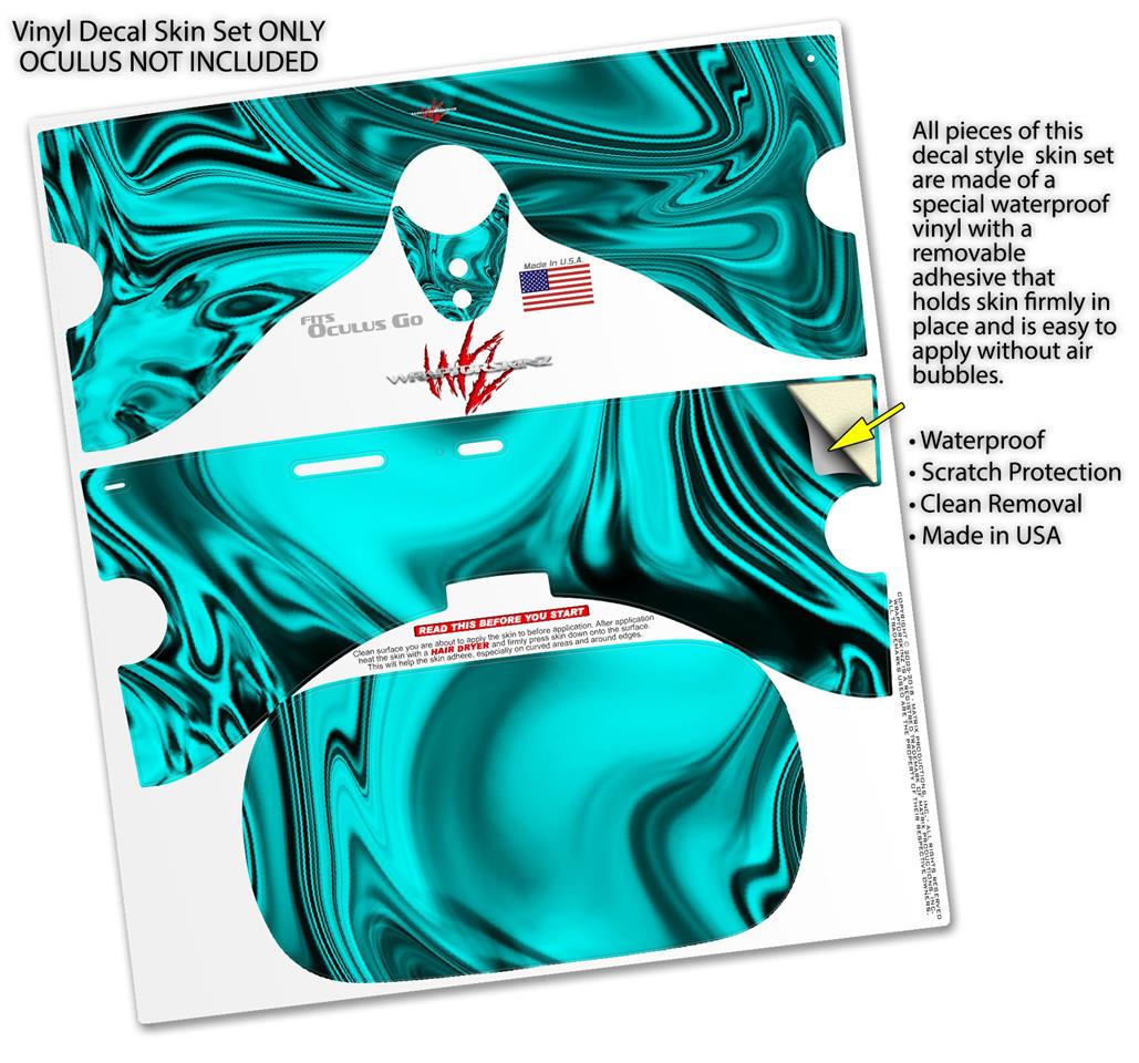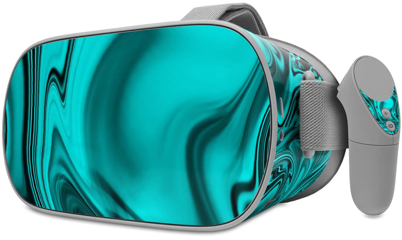 Decal style Skin Wrap compatible with Oculus Go Headset - Liquid Metal Chrome Neon Teal (OCULUS NOT INCLUDED)