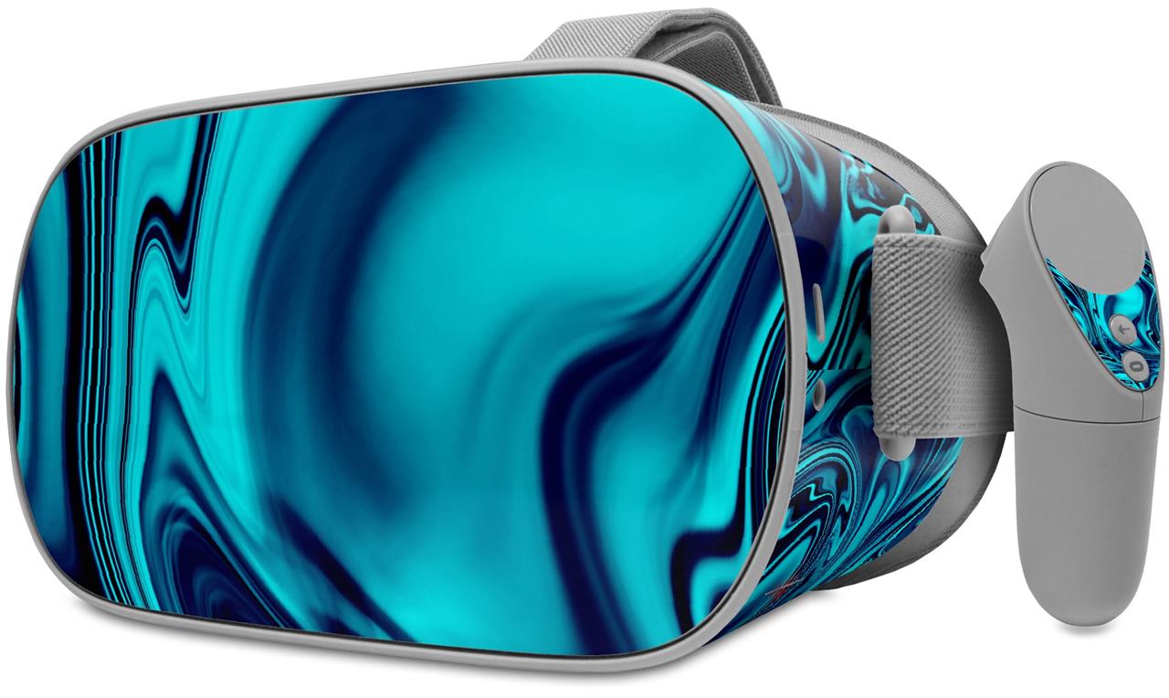 Decal style Skin Wrap compatible with Oculus Go Headset - Liquid Metal Chrome Neon Blue (OCULUS NOT INCLUDED)
