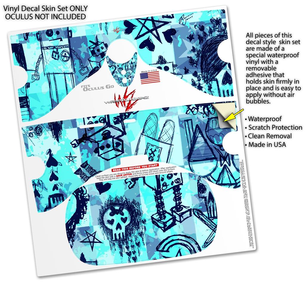 Decal style Skin Wrap compatible with Oculus Go Headset - Scene Kid Sketches Blue (OCULUS NOT INCLUDED)