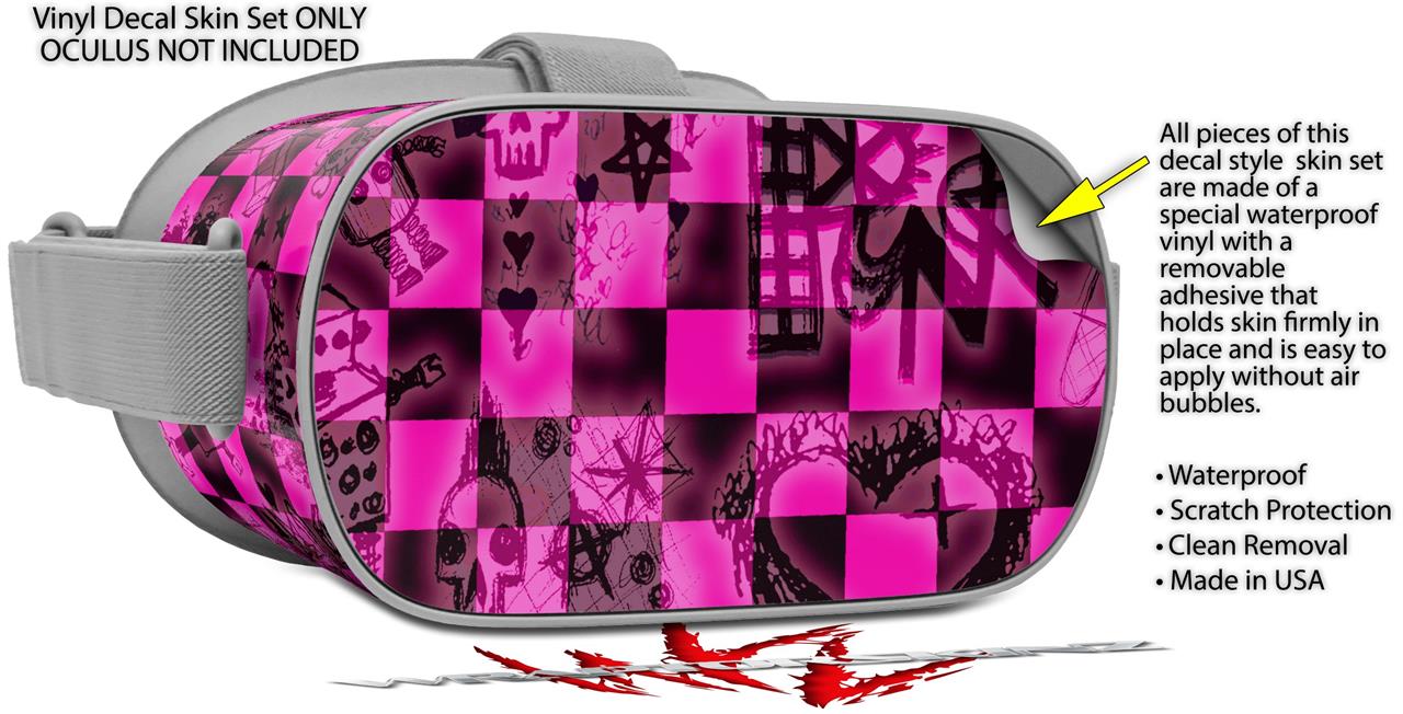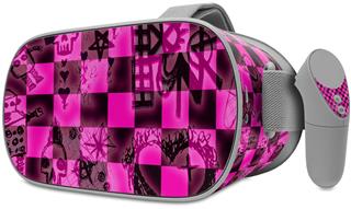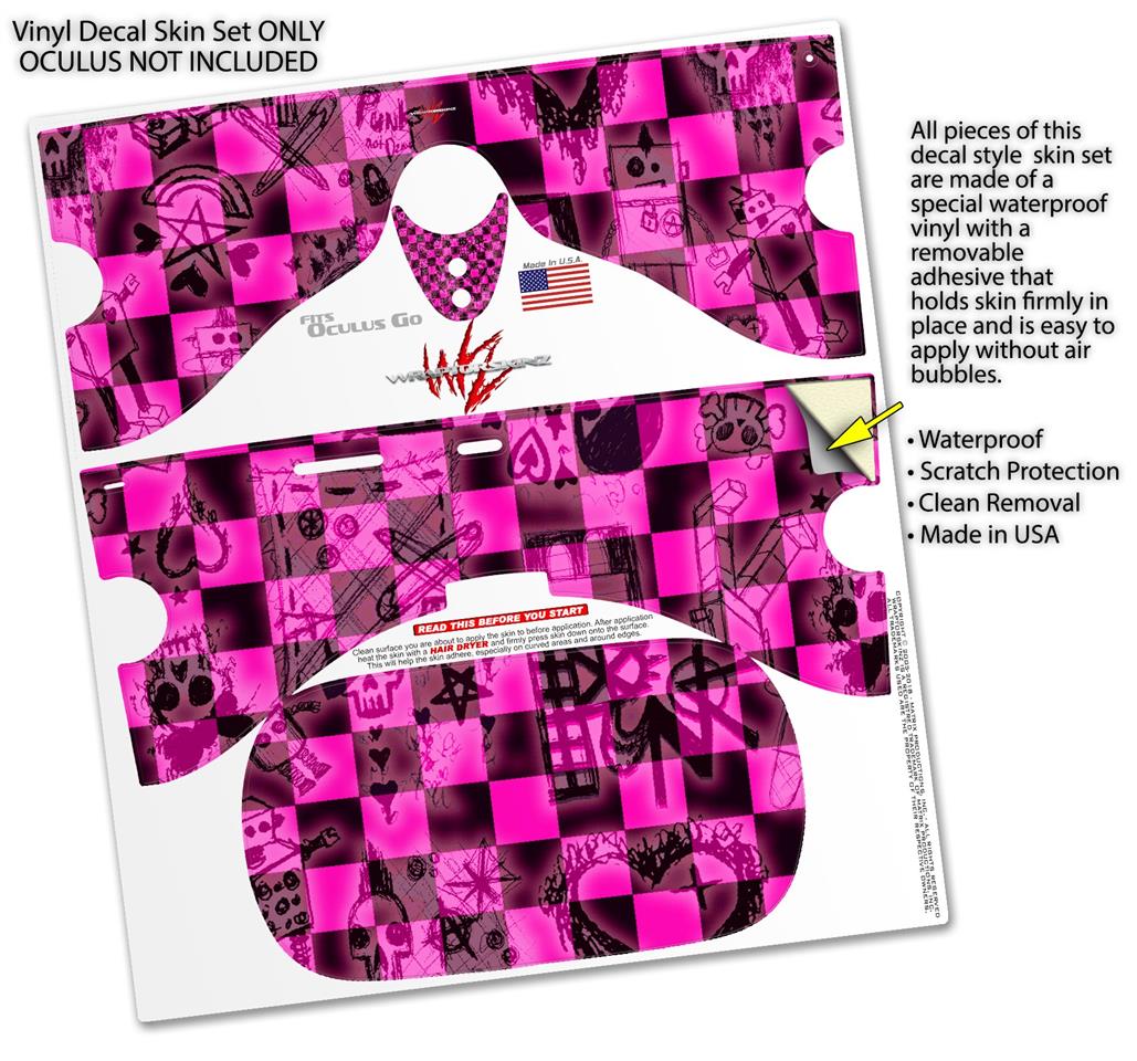Decal style Skin Wrap compatible with Oculus Go Headset - Pink Checkerboard Sketches (OCULUS NOT INCLUDED)