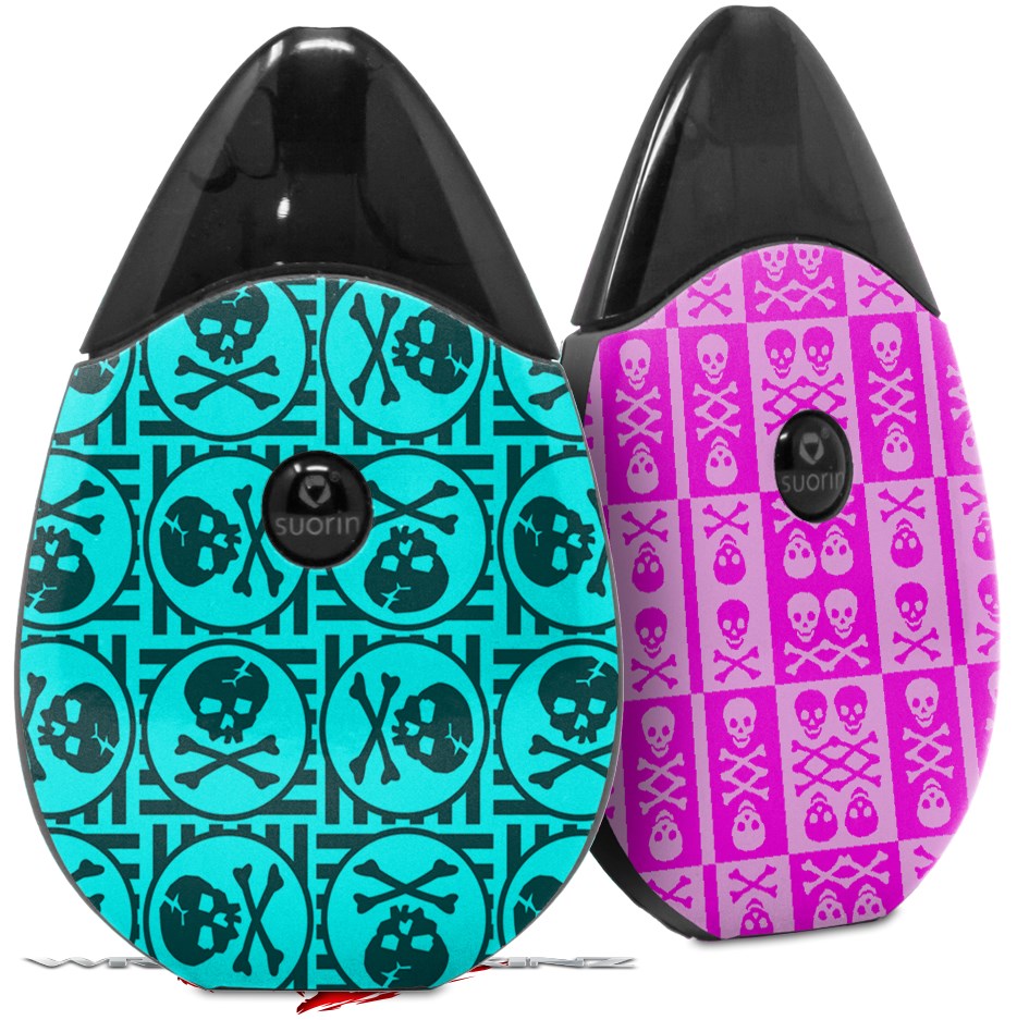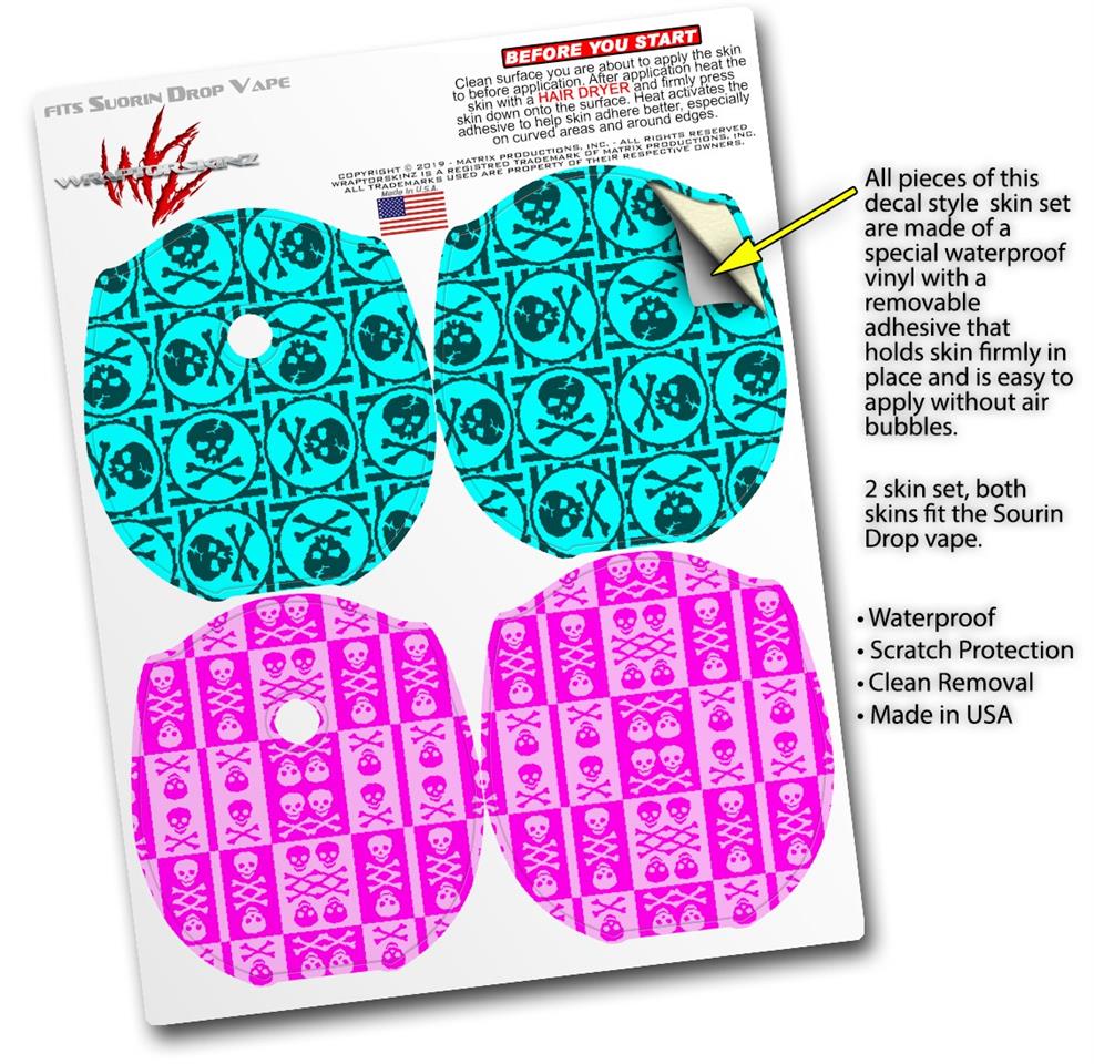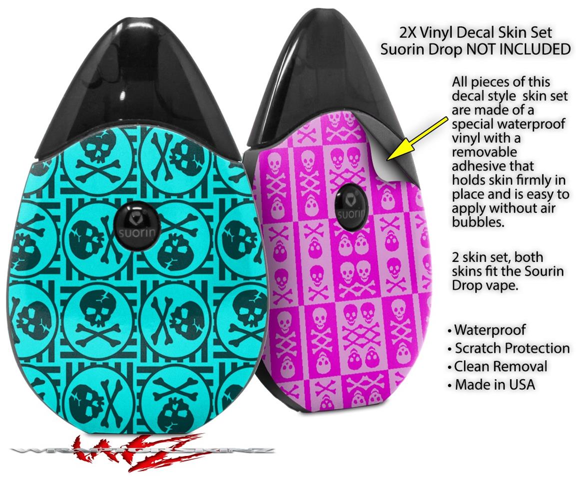 Skin Decal Wrap 2 Pack compatible with Suorin Drop Skull Patch Pattern Blue VAPE NOT INCLUDED