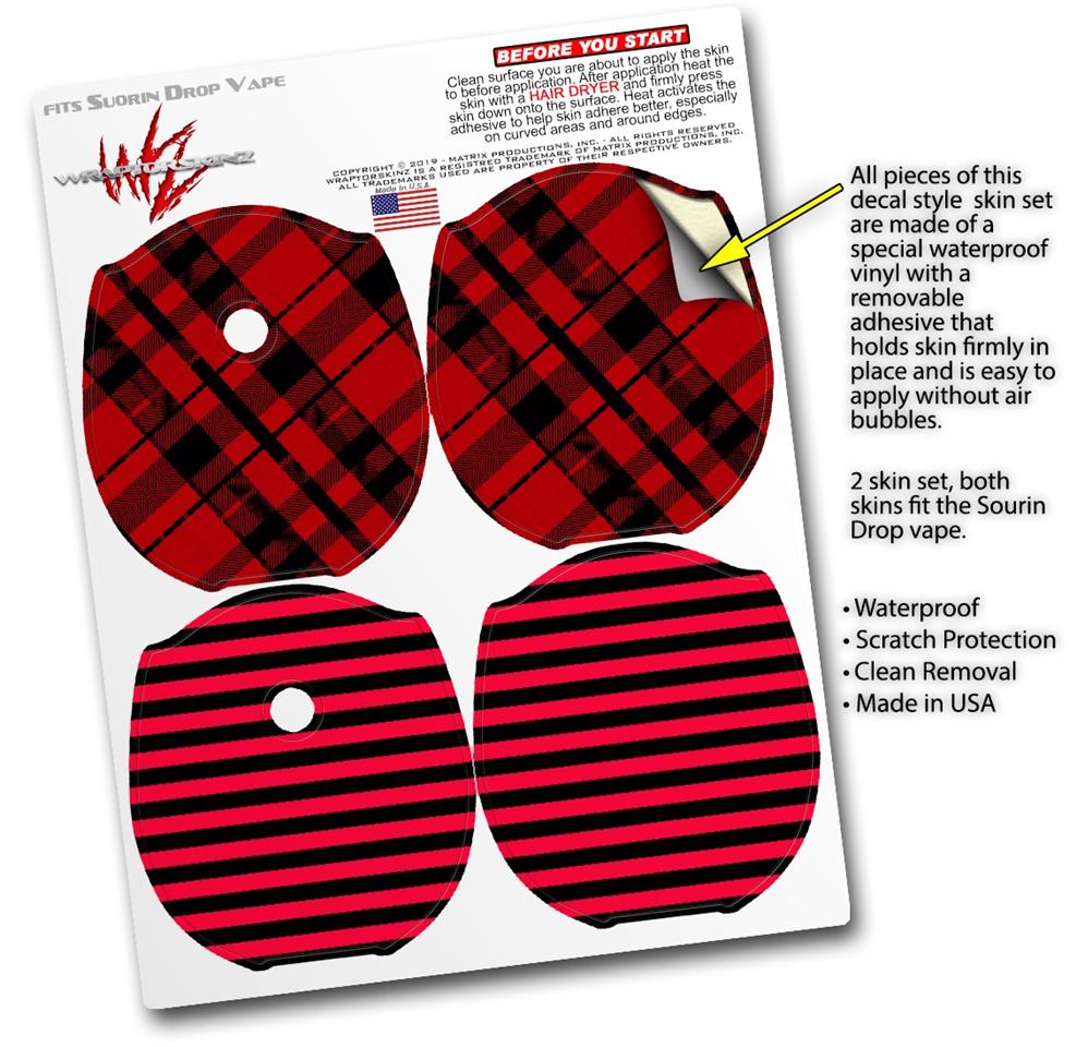 Skin Decal Wrap 2 Pack compatible with Suorin Drop Red Plaid VAPE NOT INCLUDED