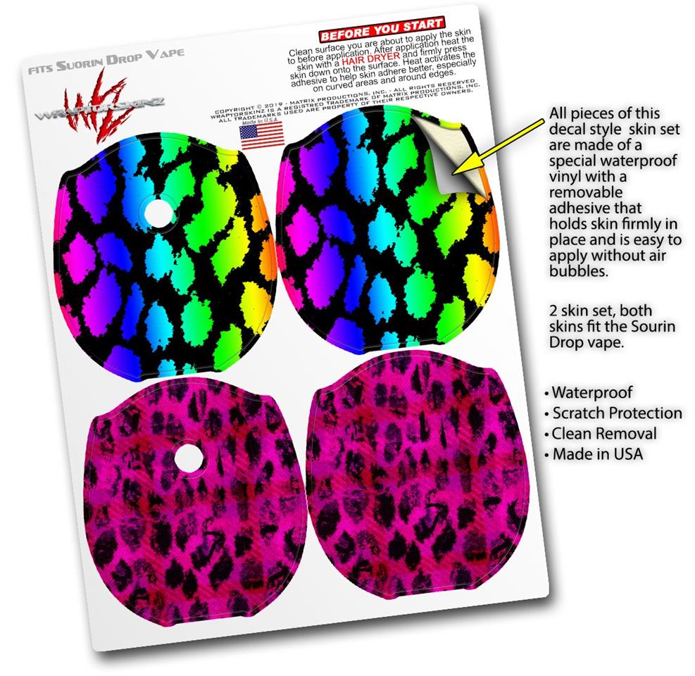 Skin Decal Wrap 2 Pack compatible with Suorin Drop Rainbow Leopard VAPE NOT INCLUDED