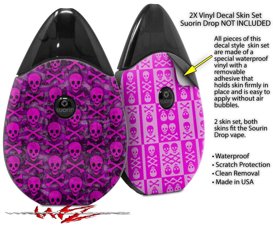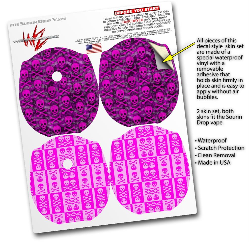 Skin Decal Wrap 2 Pack compatible with Suorin Drop Pink Skull Bones VAPE NOT INCLUDED