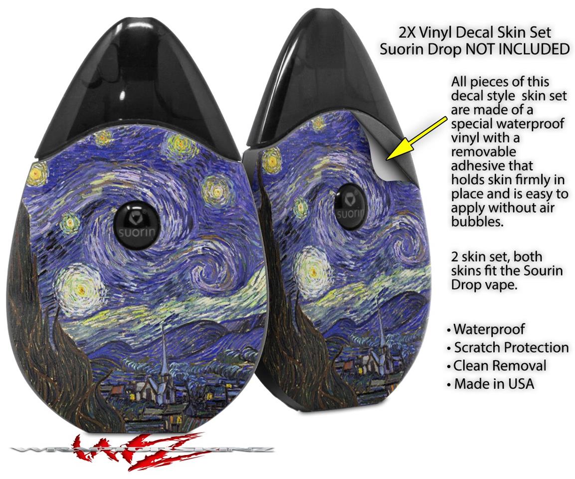 Skin Decal Wrap 2 Pack compatible with Suorin Drop Vincent Van Gogh Starry Night VAPE NOT INCLUDED