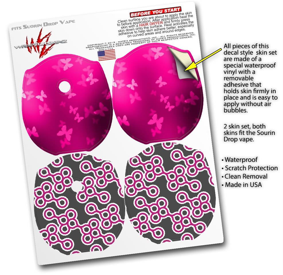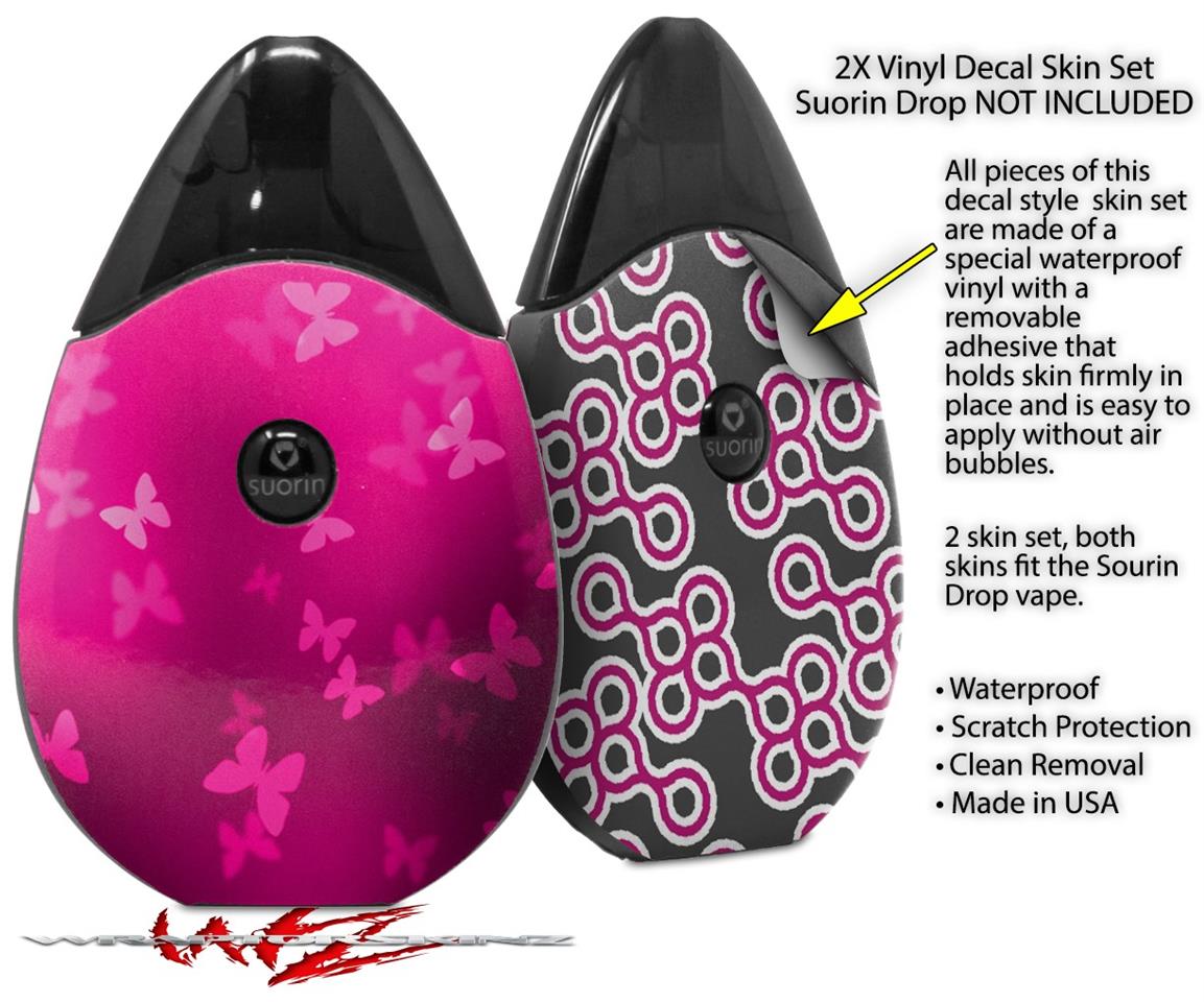 Skin Decal Wrap 2 Pack compatible with Suorin Drop Bokeh Butterflies Hot Pink VAPE NOT INCLUDED
