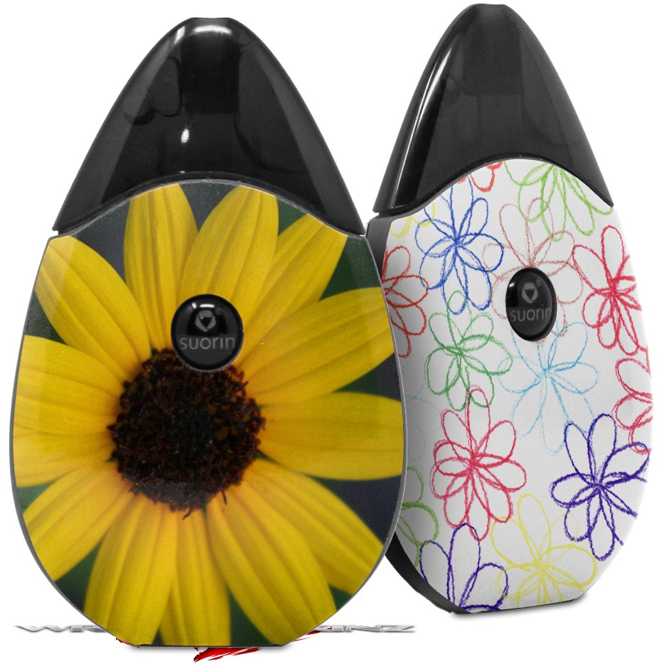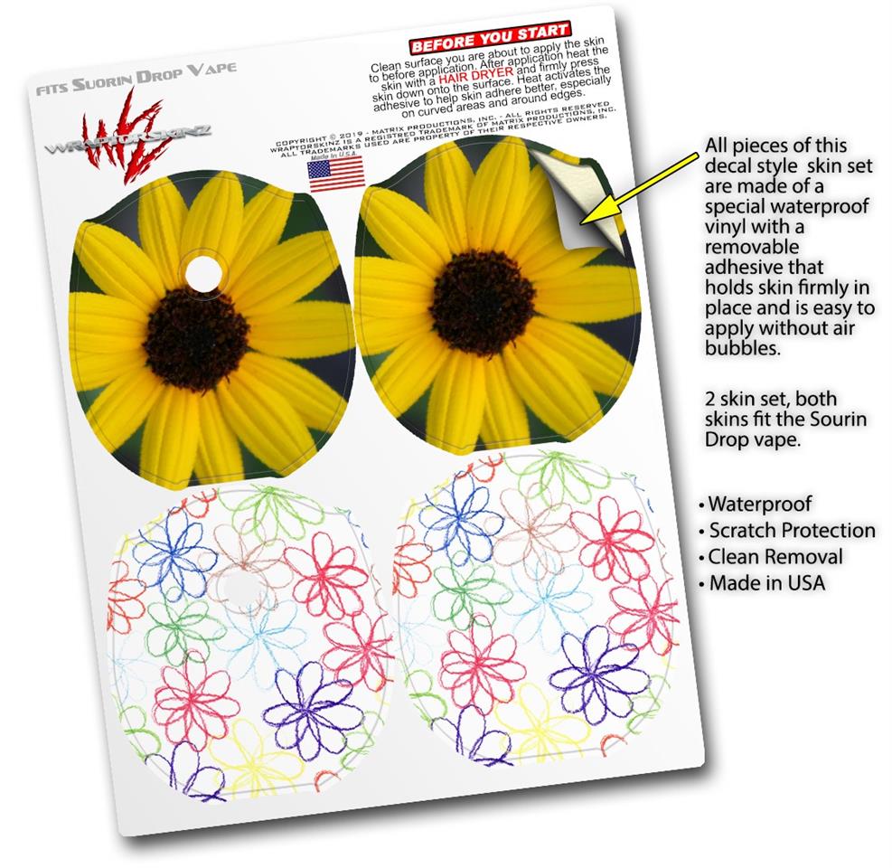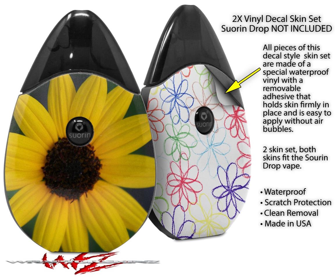 Skin Decal Wrap 2 Pack compatible with Suorin Drop Yellow Daisy VAPE NOT INCLUDED