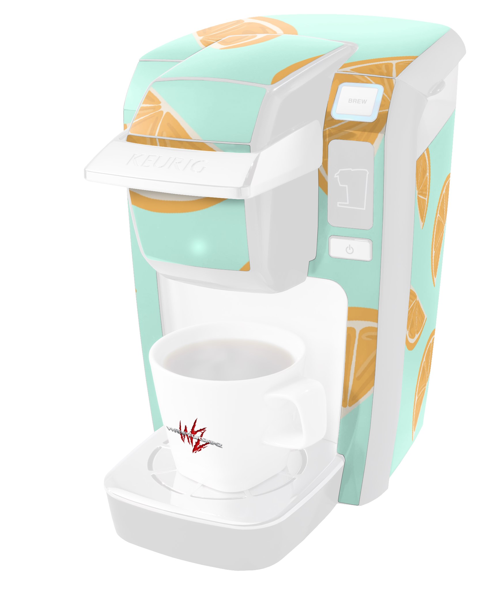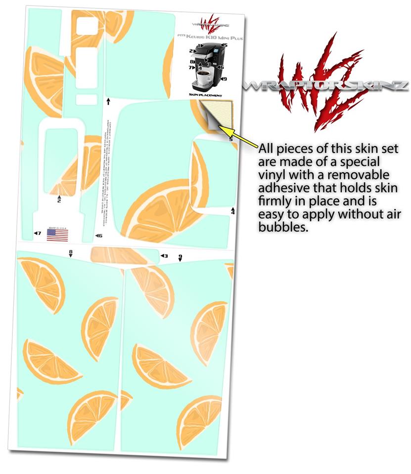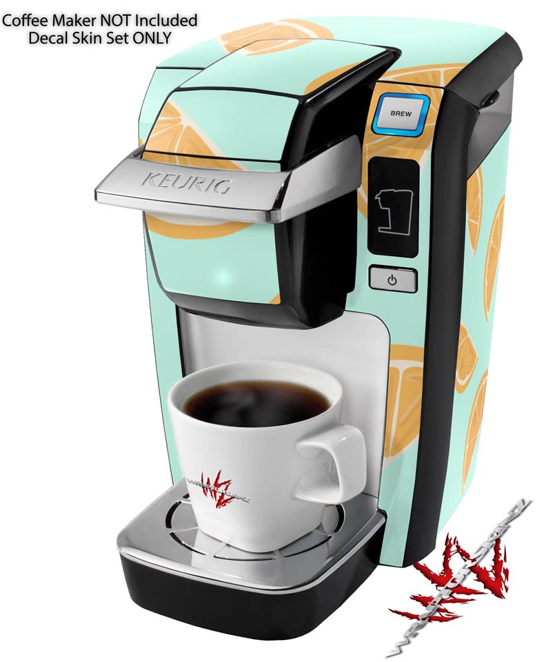 Decal Style Vinyl Skin compatible with Keurig K10 / K15 Mini Plus Coffee Makers Oranges Blue (KEURIG NOT INCLUDED)