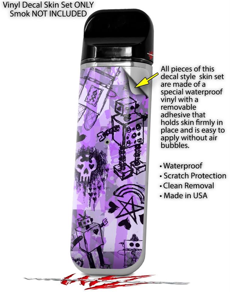 Skin Decal Wrap 2 Pack for Smok Novo v1 Scene Kid Sketches Purple VAPE NOT INCLUDED