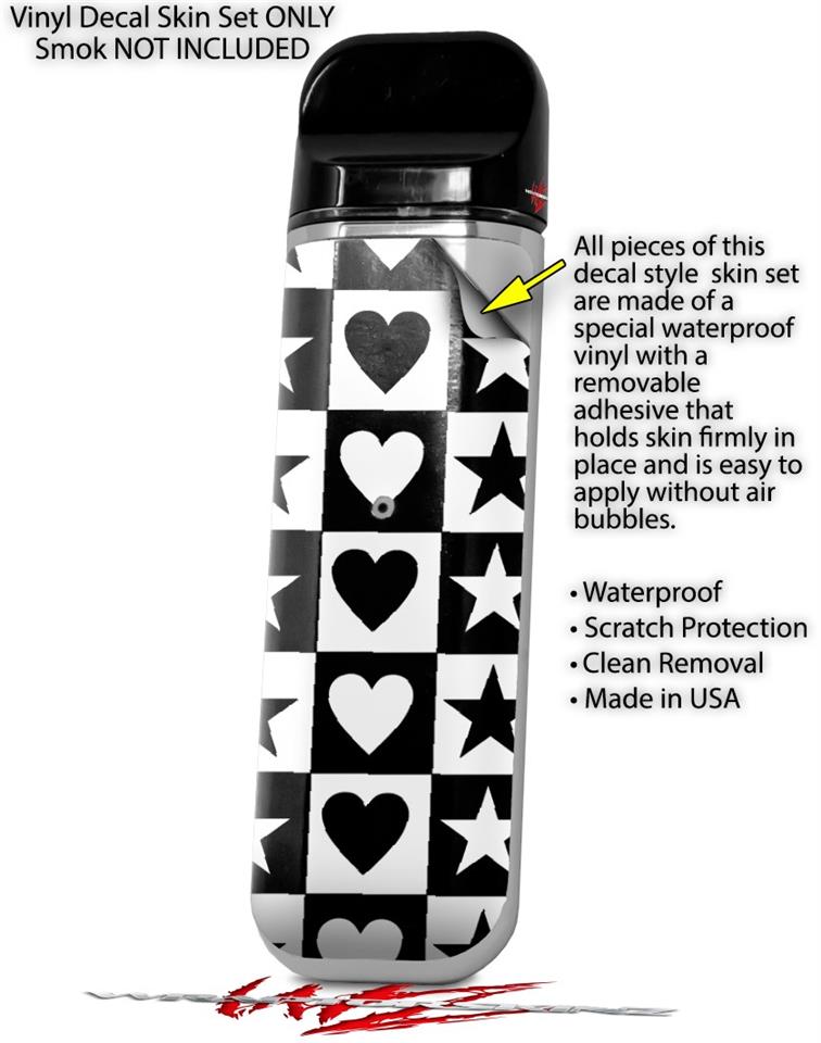 Skin Decal Wrap 2 Pack for Smok Novo v1 Hearts And Stars Black and White VAPE NOT INCLUDED