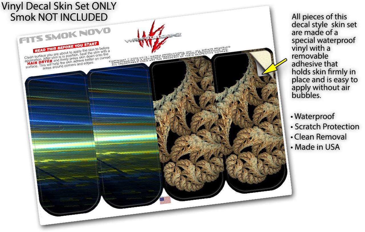 WraptorSkinz® skin wraps are printed using superb photo quality designs and vibrant colors printed with special fade resistant inks that last even in direct sun for years. WraptorSkinz are a composite of two layers of commercial grade materials. The bottom layer is a soft, flexible vinyl with a special removable adhesive that is easily positioned, applied without air bubbles. Next we print the bottom layer with UV protected, fade resistant inks that deliver superb photo quality designs in vibrant colors. Last, we bond a professional grade laminate over the entire skin adding a glossy protective finish. This product is not affiliated with or endorsed by the Smok brand.