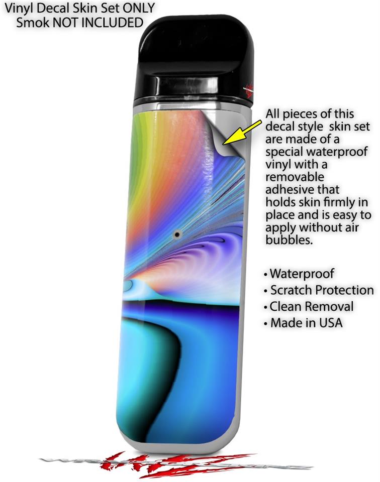 WraptorSkinz® skin wraps are printed using superb photo quality designs and vibrant colors printed with special fade resistant inks that last even in direct sun for years. WraptorSkinz are a composite of two layers of commercial grade materials. The bottom layer is a soft, flexible vinyl with a special removable adhesive that is easily positioned, applied without air bubbles. Next we print the bottom layer with UV protected, fade resistant inks that deliver superb photo quality designs in vibrant colors. Last, we bond a professional grade laminate over the entire skin adding a glossy protective finish. This product is not affiliated with or endorsed by the Smok brand.