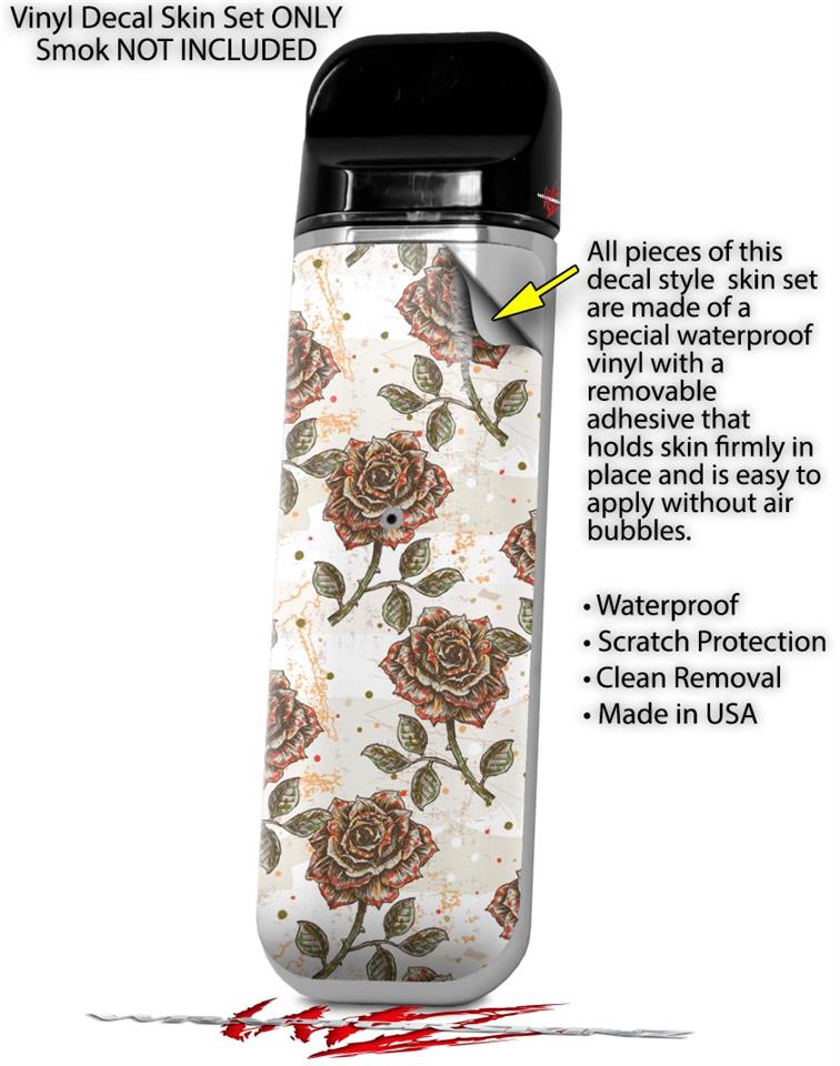 Skin Decal Wrap 2 Pack for Smok Novo v1 Flowers Pattern Roses 20 VAPE NOT INCLUDED
