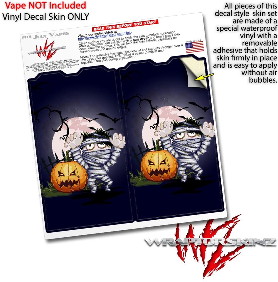 Skin Decal Wrap 2 Pack compatible with Juul Vapes Halloween Jack O Lantern Pumpkin Bats and Zombie Mummy JUUL NOT INCLUDED