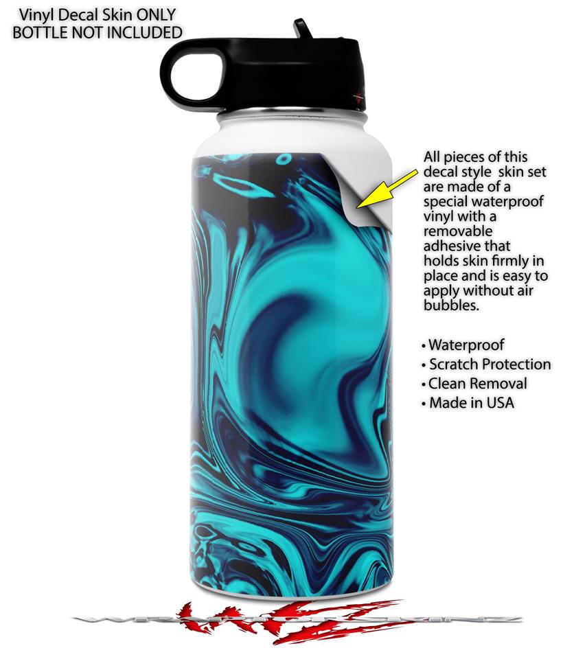Skin Wrap Decal compatible with Hydro Flask Wide Mouth Bottle 32oz Liquid Metal Chrome Neon Blue (BOTTLE NOT INCLUDED)