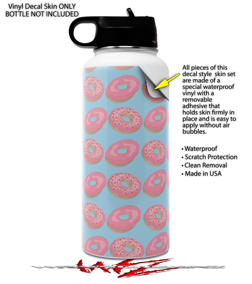 Skin Wrap Decal compatible with Hydro Flask Wide Mouth Bottle 32oz Donuts Blue (BOTTLE NOT INCLUDED)