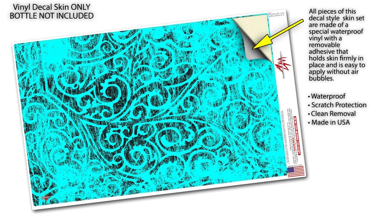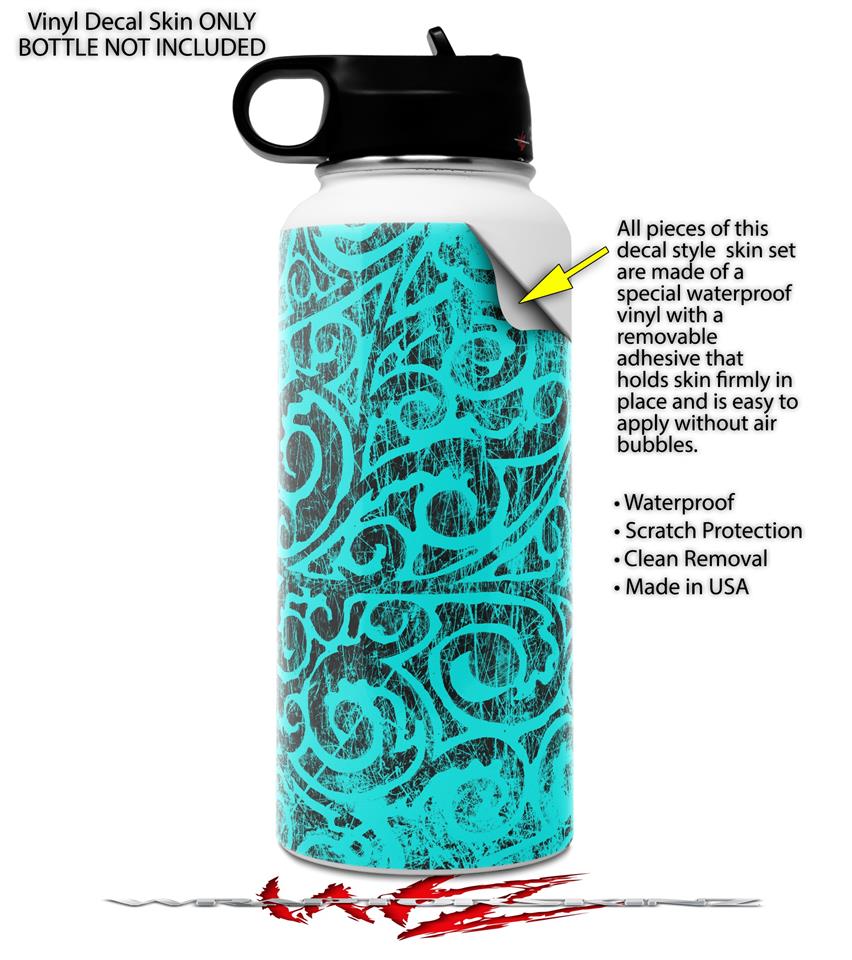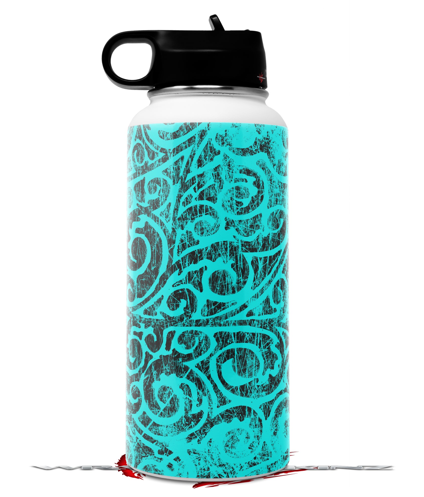 Skin Wrap Decal compatible with Hydro Flask Wide Mouth Bottle 32oz Folder Doodles Neon Teal (BOTTLE NOT INCLUDED)