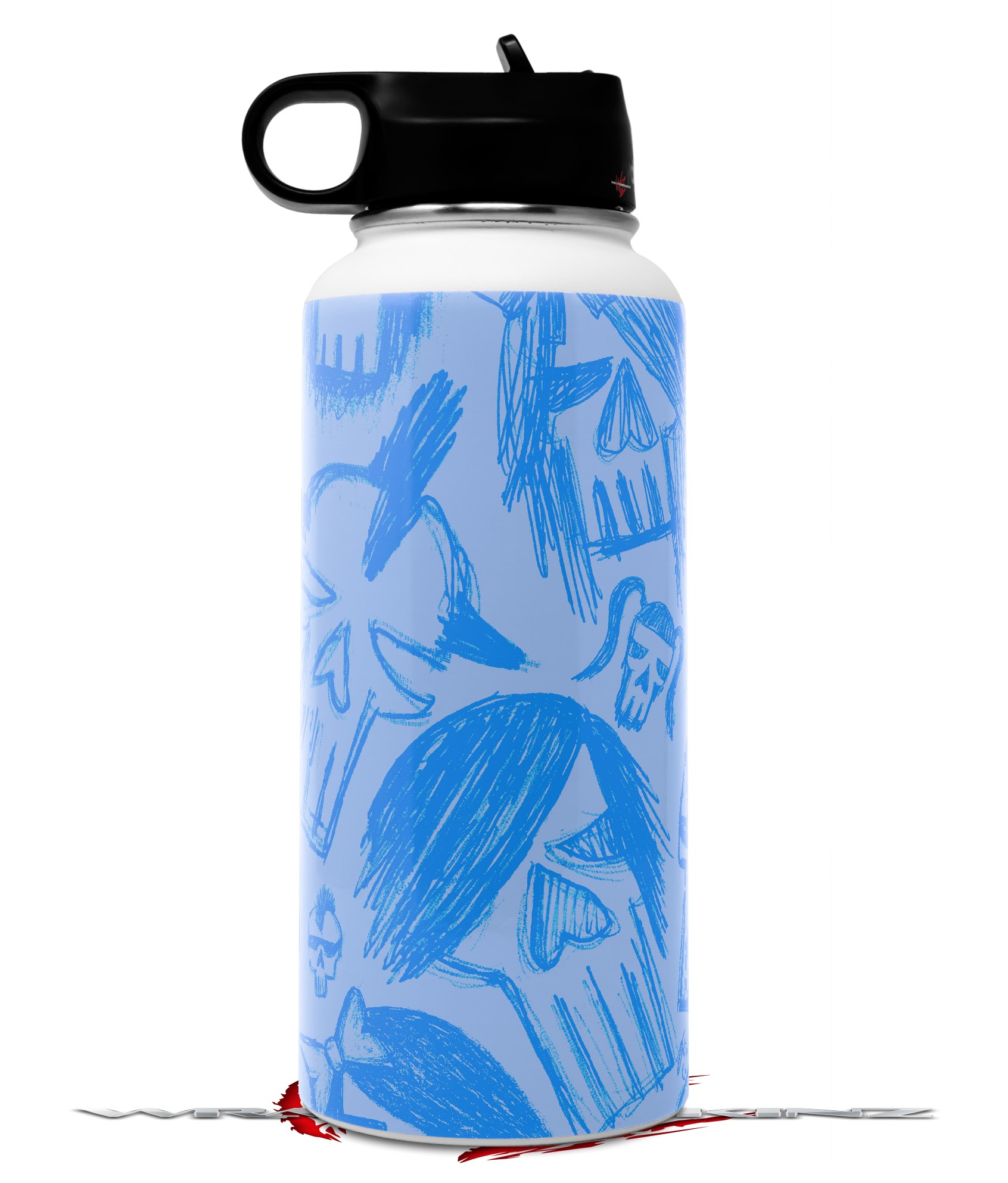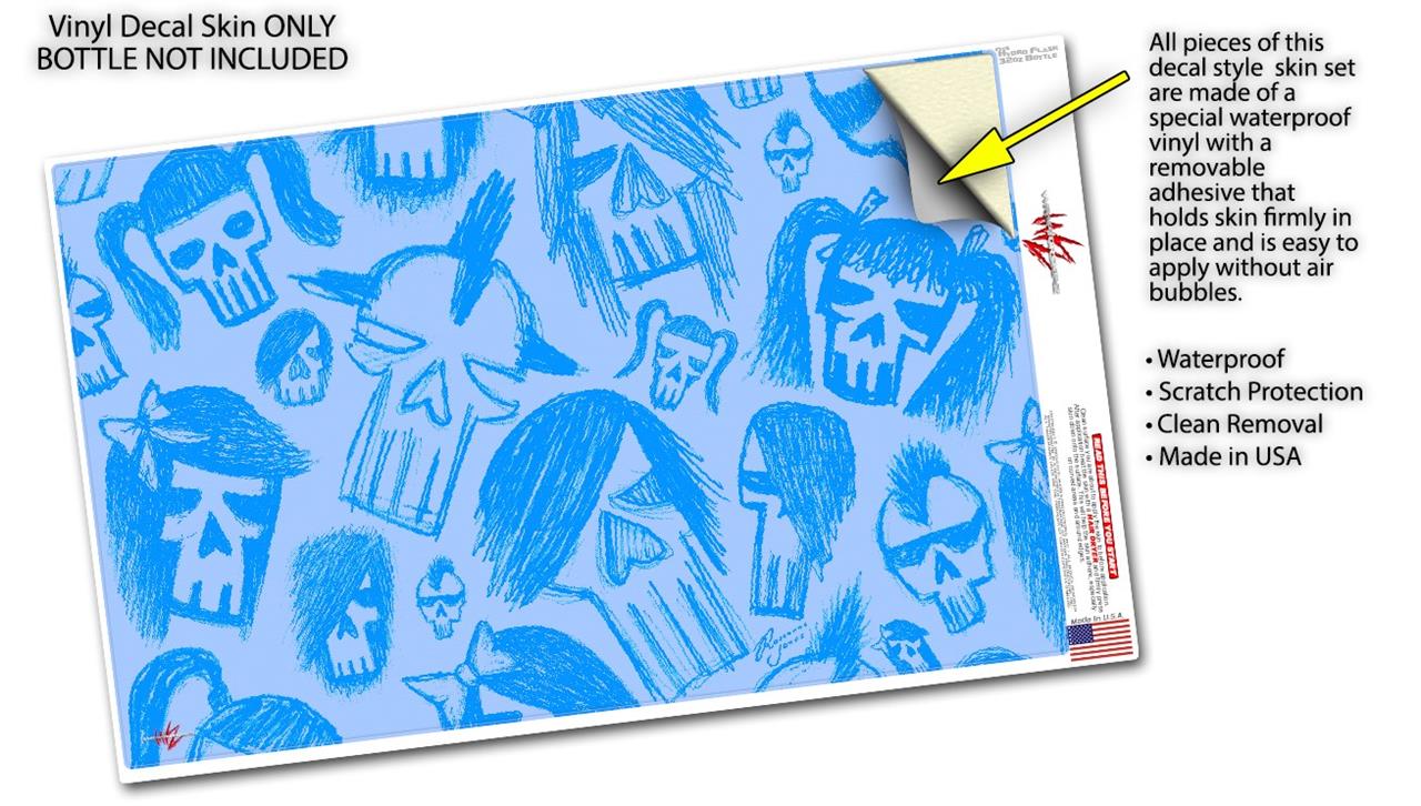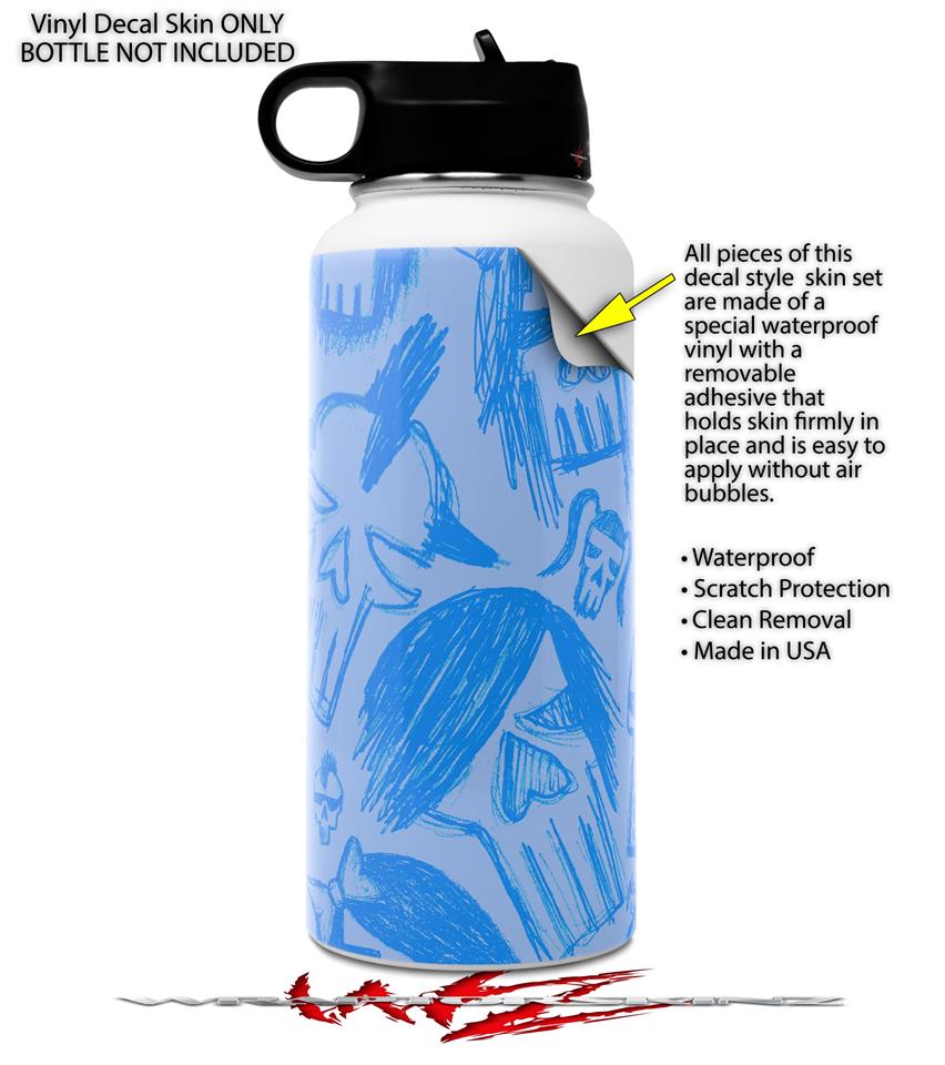 Skin Wrap Decal compatible with Hydro Flask Wide Mouth Bottle 32oz Skull Sketches Blue (BOTTLE NOT INCLUDED)