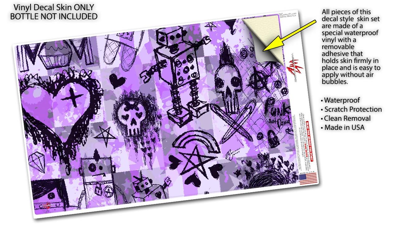 Skin Wrap Decal compatible with Hydro Flask Wide Mouth Bottle 32oz Scene Kid Sketches Purple (BOTTLE NOT INCLUDED)
