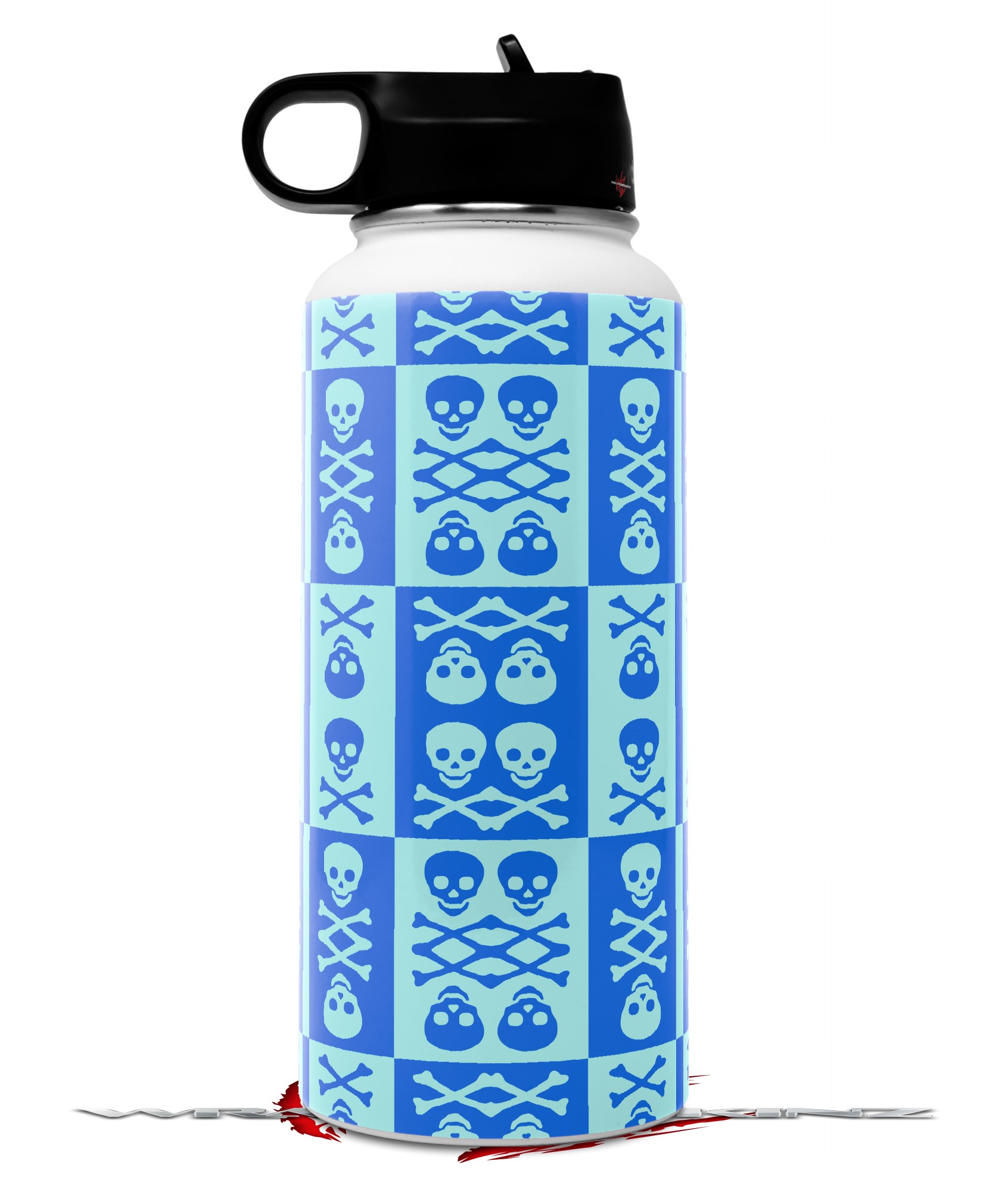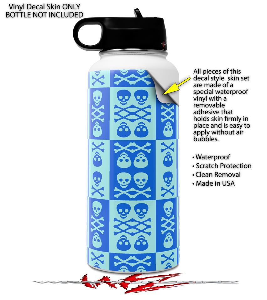 Skin Wrap Decal compatible with Hydro Flask Wide Mouth Bottle 32oz Skull And Crossbones Pattern Blue (BOTTLE NOT INCLUDED)