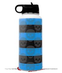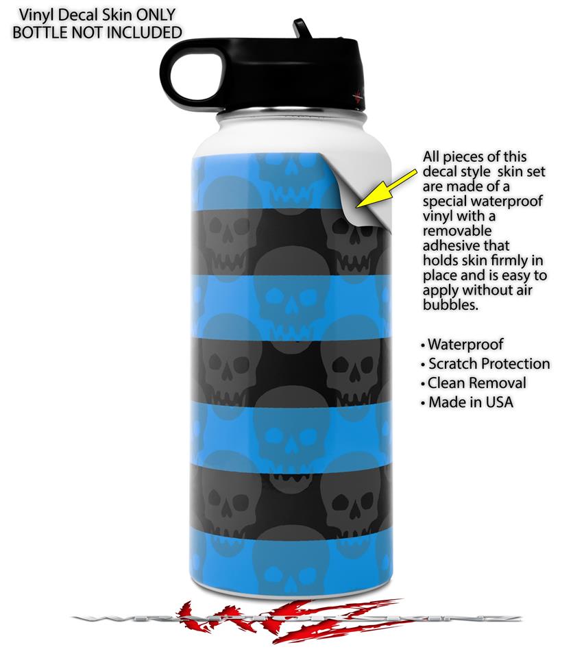 Skin Wrap Decal compatible with Hydro Flask Wide Mouth Bottle 32oz Skull Stripes Blue (BOTTLE NOT INCLUDED)