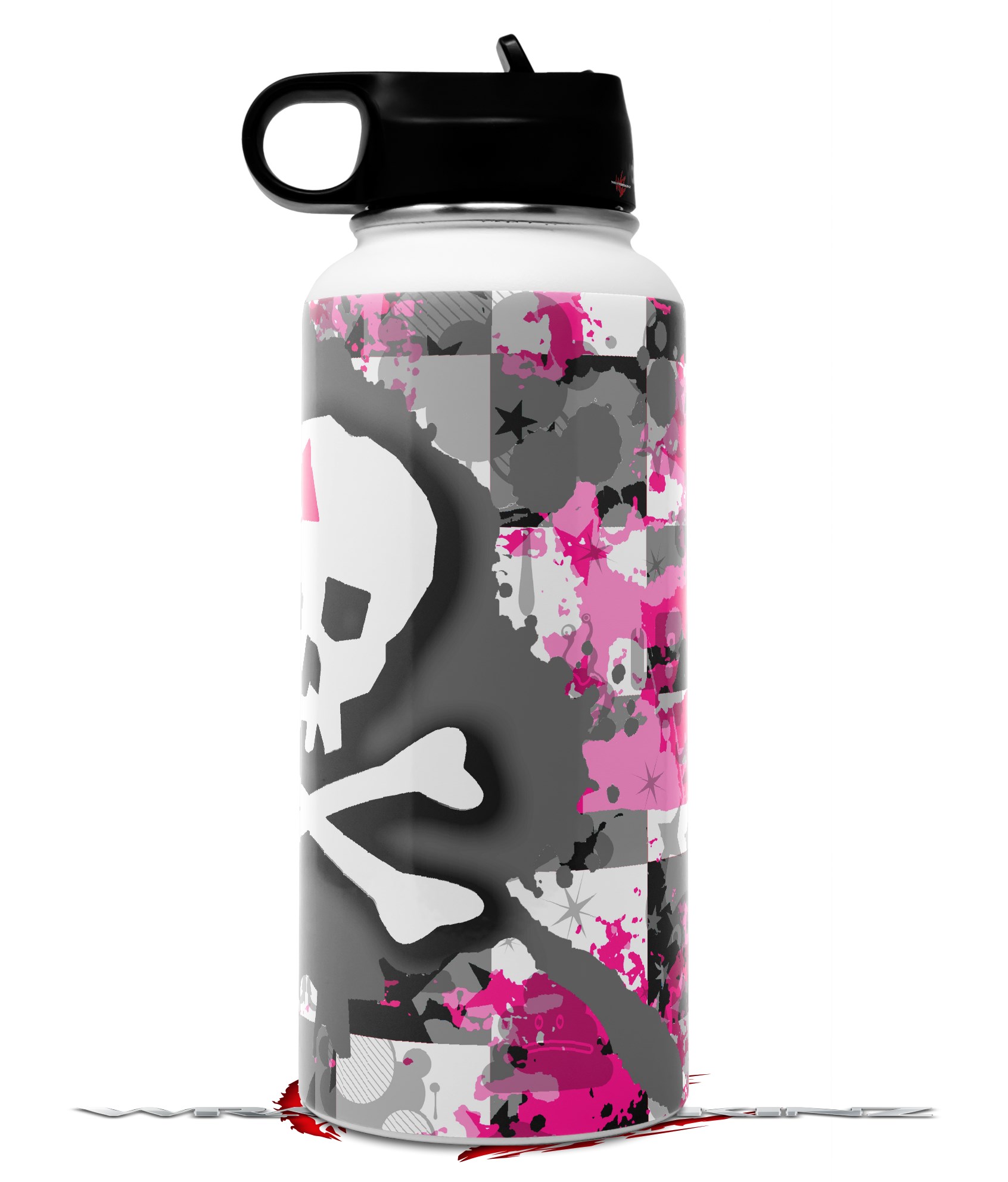 Skin Wrap Decal compatible with Hydro Flask Wide Mouth Bottle 32oz Girly Pink Bow Skull (BOTTLE NOT INCLUDED)