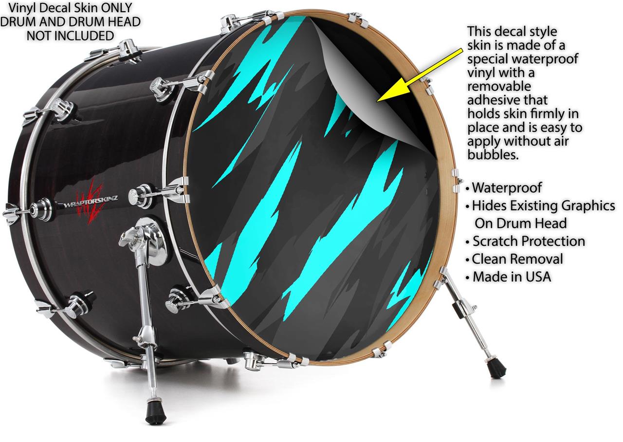 Vinyl Decal Skin Wrap for 22" Bass Kick Drum Head Jagged Camo Neon Teal - DRUM HEAD NOT INCLUDED