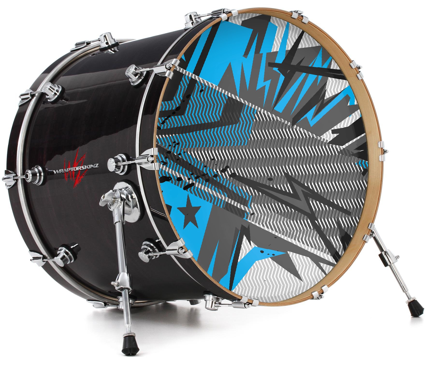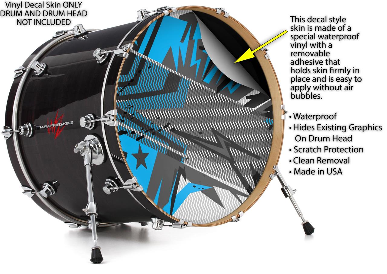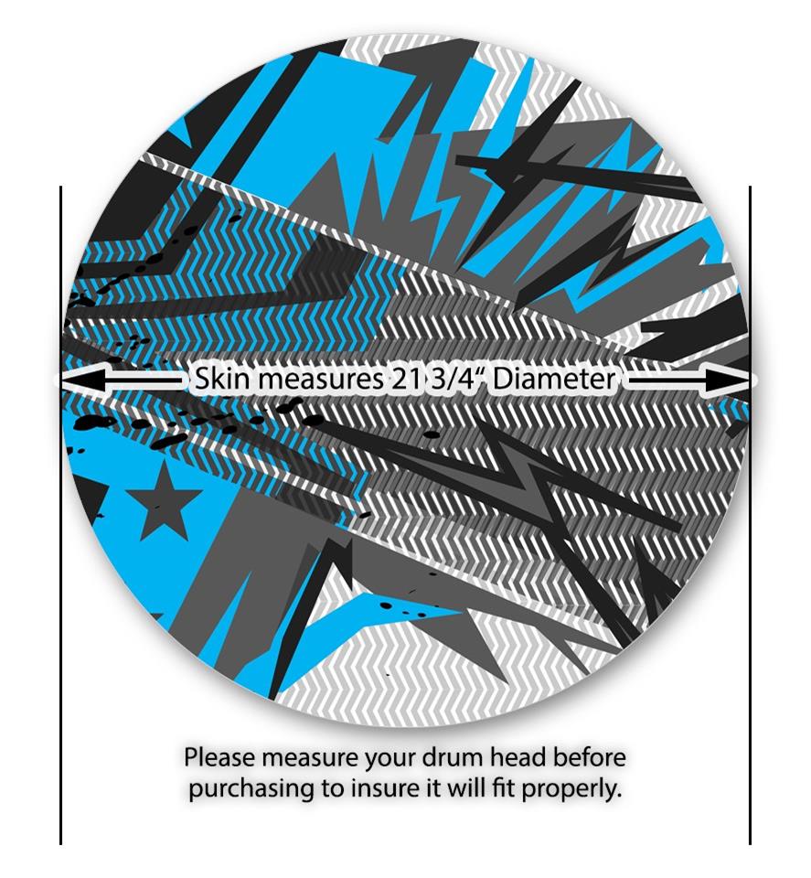 This design also available in other sizes. WraptorSkinz® skin wraps compatible with most kick drum heads. Printed using superb photo quality designs and vibrant colors printed with special fade resistant inks that last even in direct sun for years. WraptorSkinz are a composite three layer commercial grade materials vinyl. The bottom layer is a air release, grey block out removable adhesive that hides existing graphics on the drum head and is easily applied without air bubbles. The middle layer is a flexible vinyl printed with UV protected, fade resistant inks that deliver superb photo quality designs in vibrant colors. Finally, we bond a professional grade laminate over the entire skin adding a glossy protective finish.