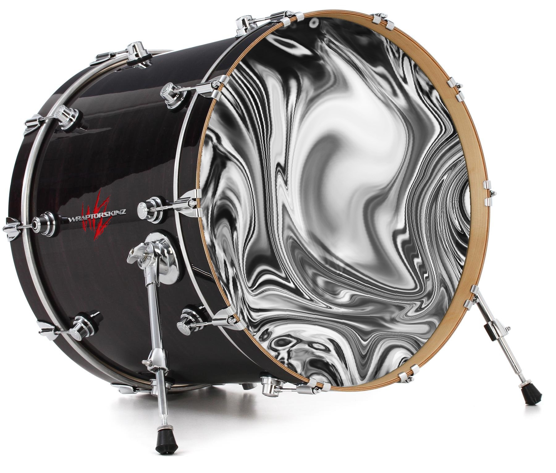 Vinyl Decal Skin Wrap for 22" Bass Kick Drum Head Liquid Metal Chrome - DRUM HEAD NOT INCLUDED