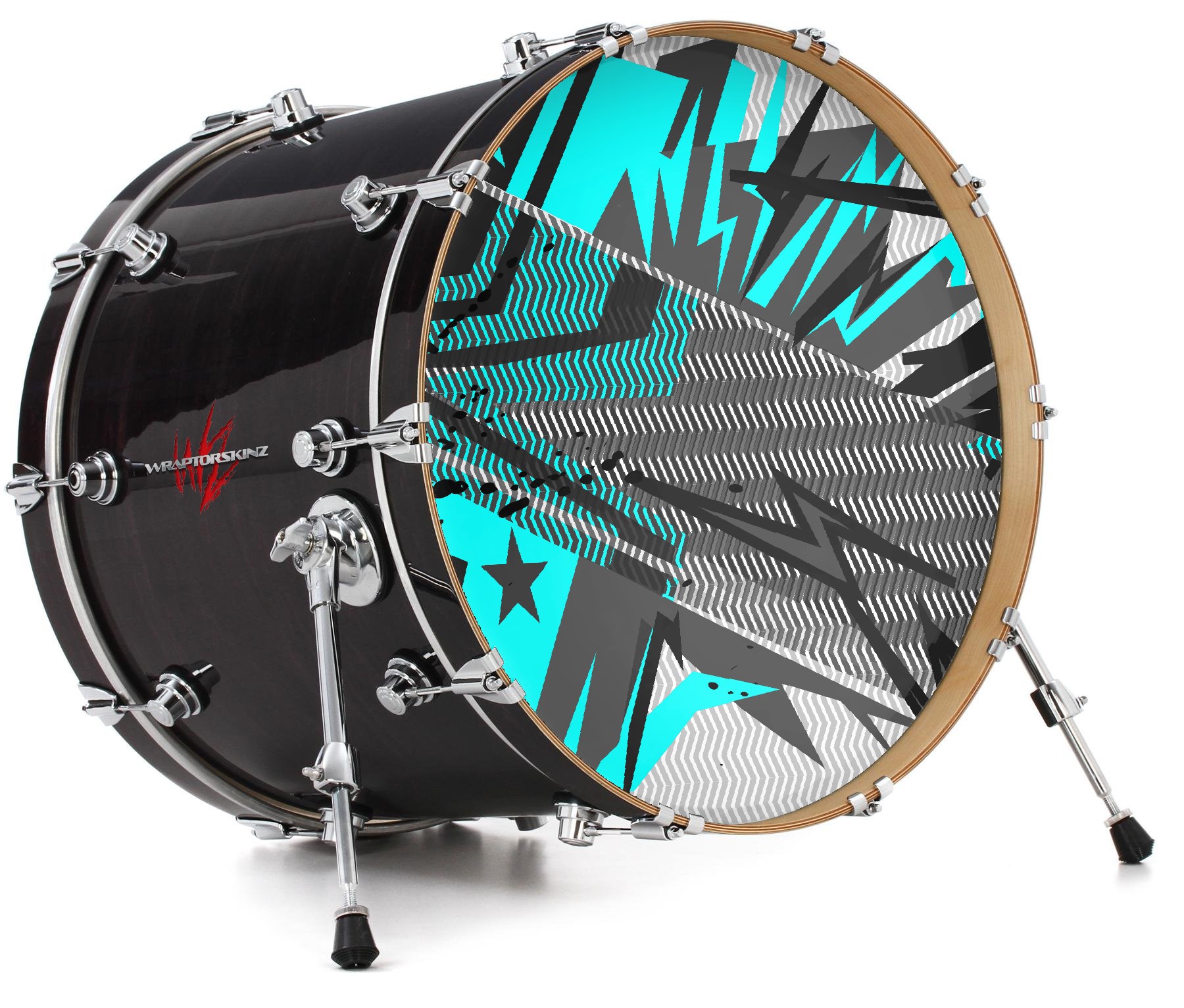 This design also available in other sizes. WraptorSkinz® skin wraps compatible with most kick drum heads. Printed using superb photo quality designs and vibrant colors printed with special fade resistant inks that last even in direct sun for years. WraptorSkinz are a composite three layer commercial grade materials vinyl. The bottom layer is a air release, grey block out removable adhesive that hides existing graphics on the drum head and is easily applied without air bubbles. The middle layer is a flexible vinyl printed with UV protected, fade resistant inks that deliver superb photo quality designs in vibrant colors. Finally, we bond a professional grade laminate over the entire skin adding a glossy protective finish.