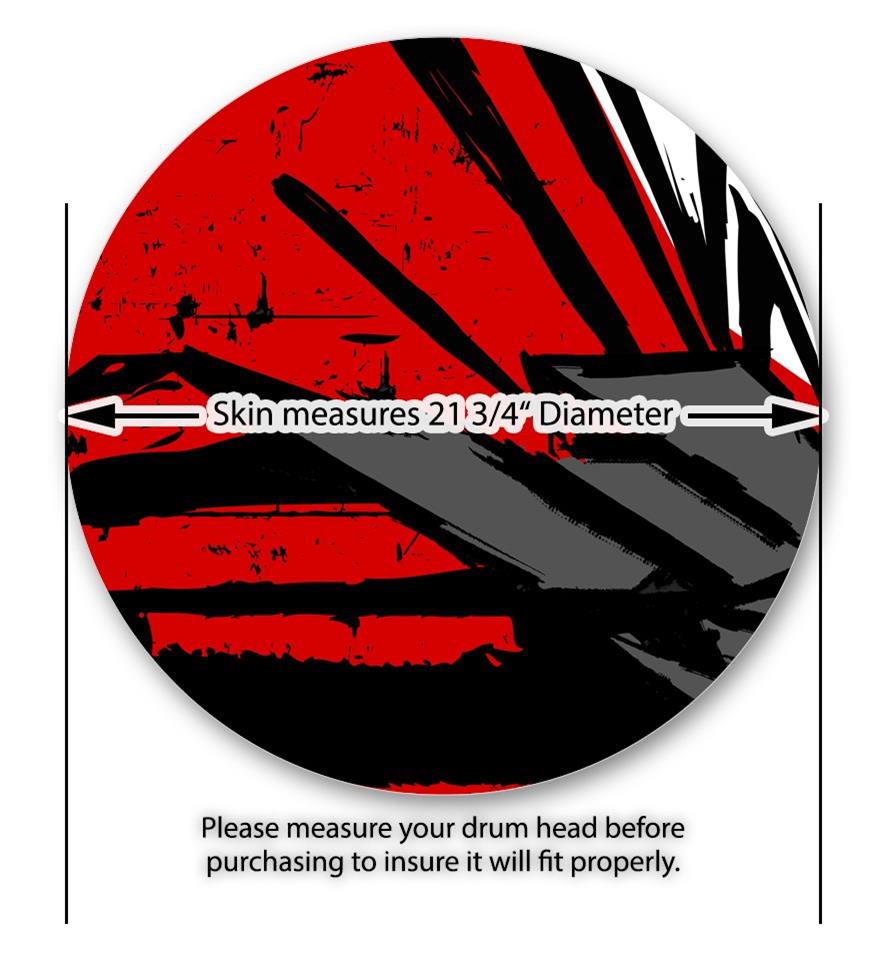 This design also available in other sizes. WraptorSkinz® skin wraps compatible with most kick drum heads. Printed using superb photo quality designs and vibrant colors printed with special fade resistant inks that last even in direct sun for years. WraptorSkinz are a composite three layer commercial grade materials vinyl. The bottom layer is a air release, grey block out removable adhesive that hides existing graphics on the drum head and is easily applied without air bubbles. The middle layer is a flexible vinyl printed with UV protected, fade resistant inks that deliver superb photo quality designs in vibrant colors. Finally, we bond a professional grade laminate over the entire skin adding a glossy protective finish.