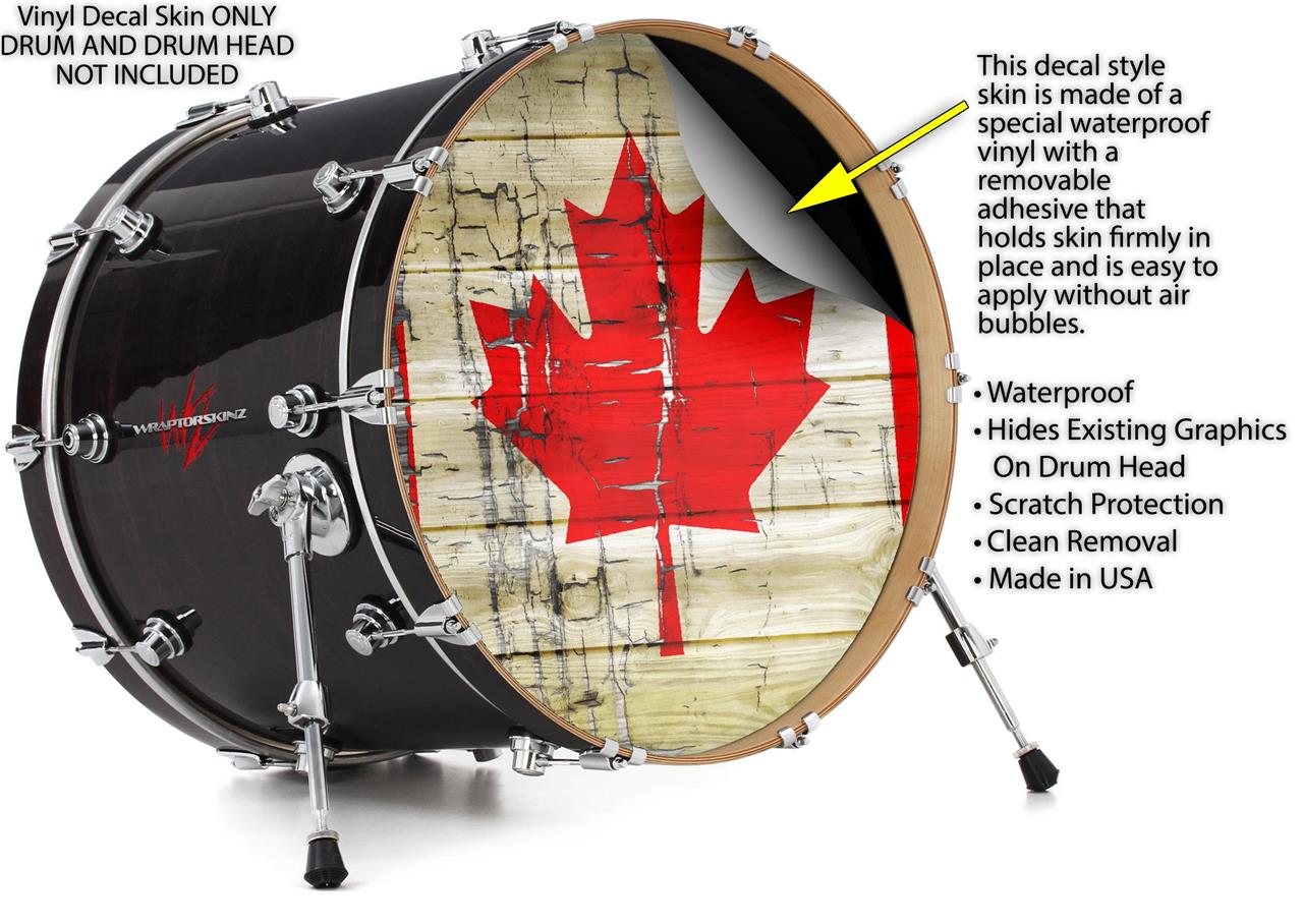 Vinyl Decal Skin Wrap for 22" Bass Kick Drum Head Painted Faded and Cracked Canadian Canada Flag - DRUM HEAD NOT INCLUDED