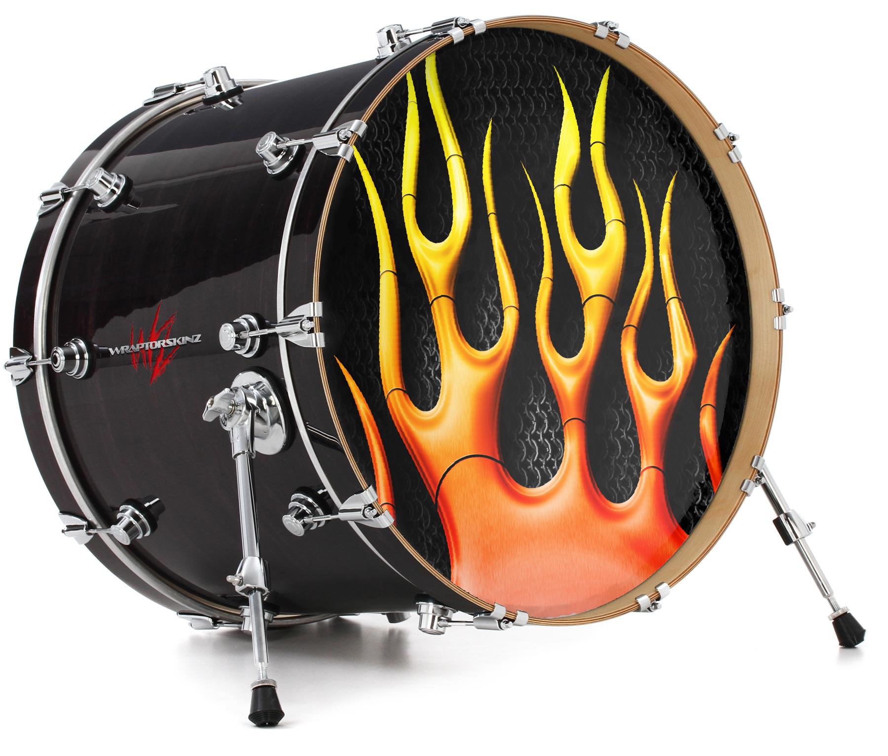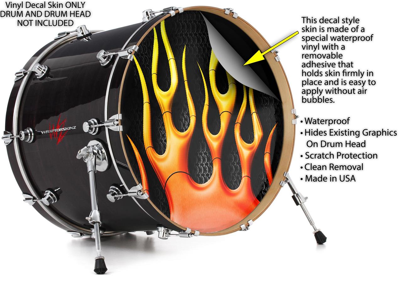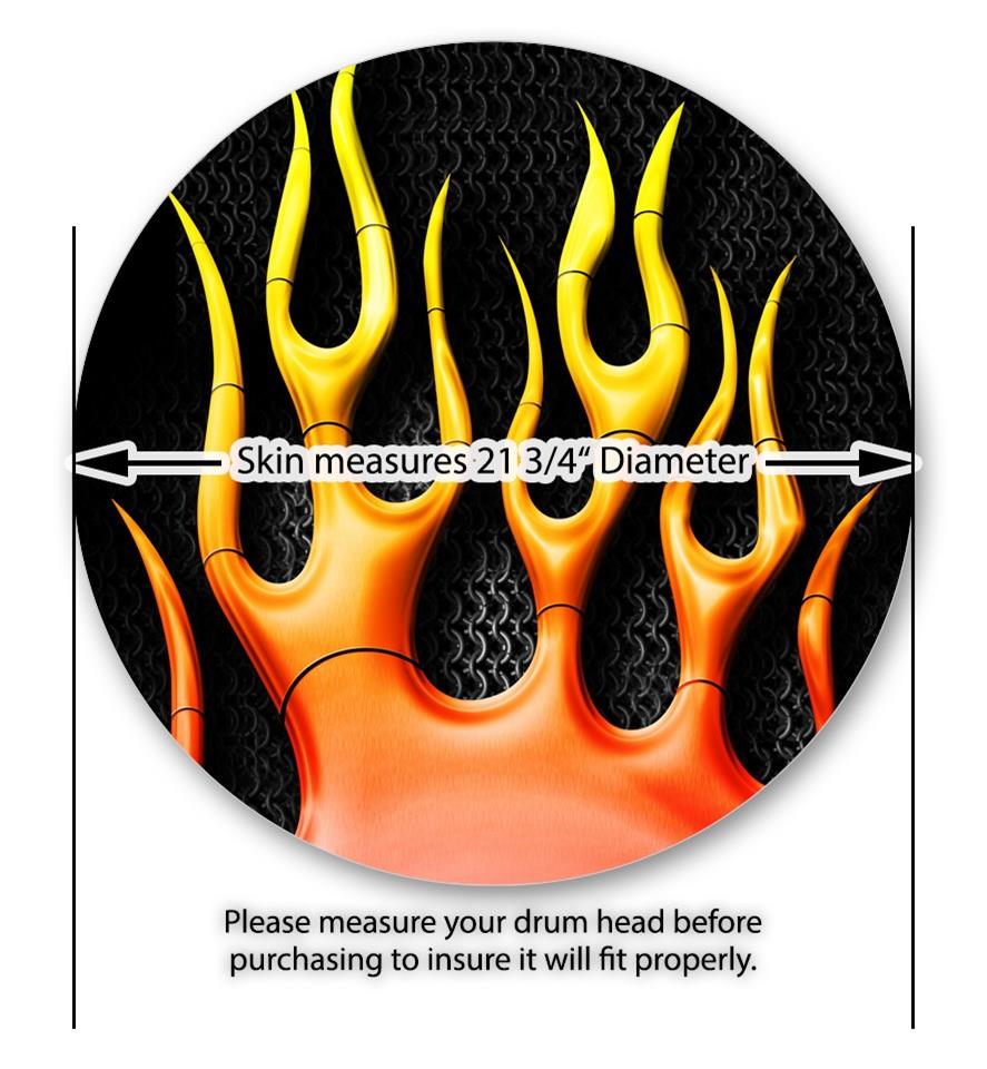 Vinyl Decal Skin Wrap for 22" Bass Kick Drum Head Metal Flames - DRUM HEAD NOT INCLUDED