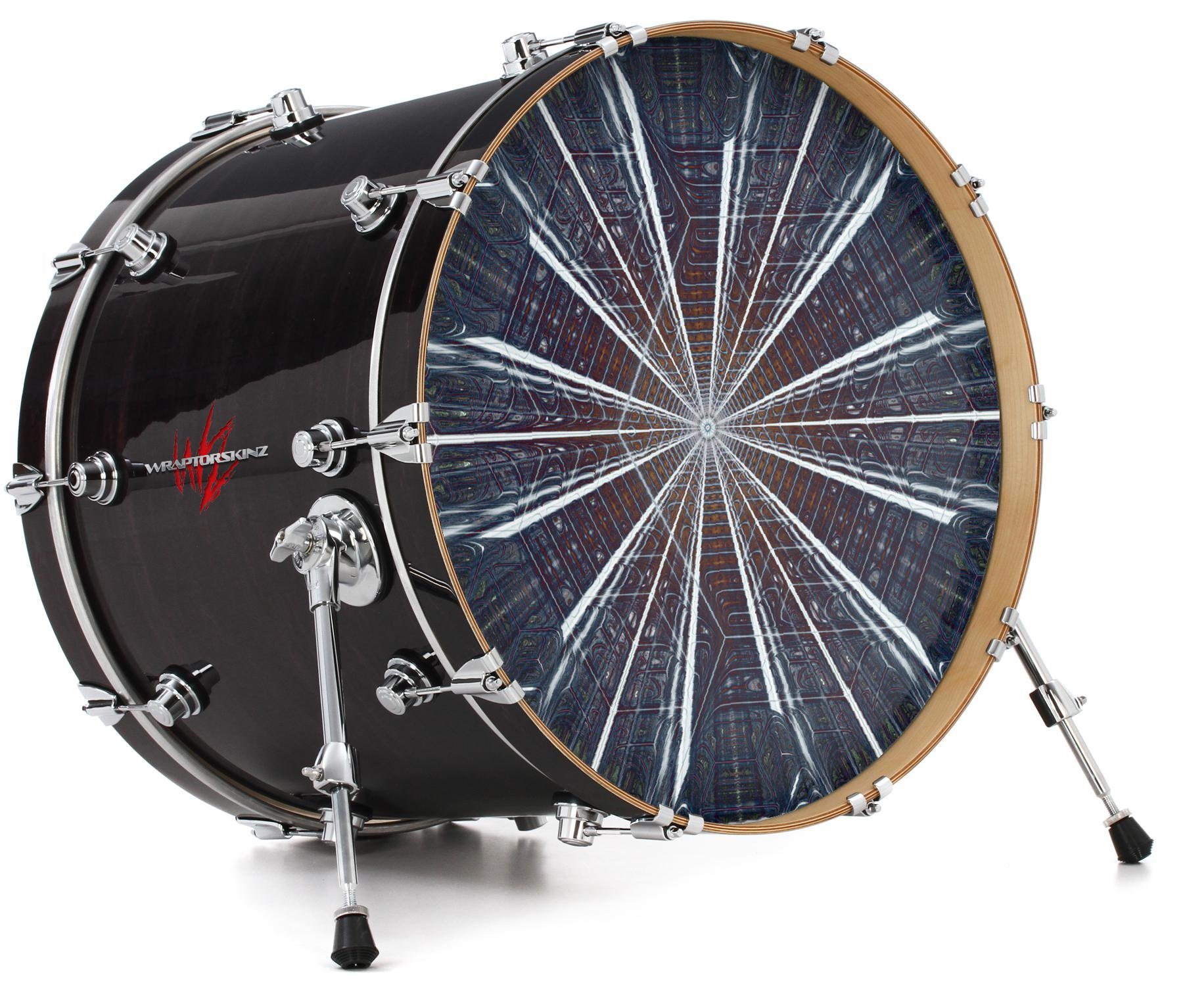 This design also available in other sizes. WraptorSkinz® skin wraps compatible with most kick drum heads. Printed using superb photo quality designs and vibrant colors printed with special fade resistant inks that last even in direct sun for years. WraptorSkinz are a composite three layer commercial grade materials vinyl. The bottom layer is a air release, grey block out removable adhesive that hides existing graphics on the drum head and is easily applied without air bubbles. The middle layer is a flexible vinyl printed with UV protected, fade resistant inks that deliver superb photo quality designs in vibrant colors. Finally, we bond a professional grade laminate over the entire skin adding a glossy protective finish.