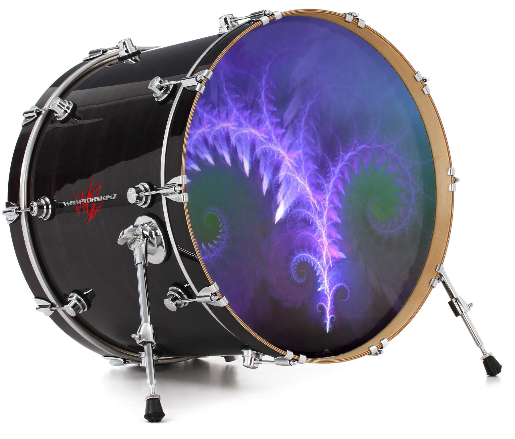 This design also available in other sizes. WraptorSkinz® skin wraps compatible with most kick drum heads. Printed using superb photo quality designs and vibrant colors printed with special fade resistant inks that last even in direct sun for years. WraptorSkinz are a composite three layer commercial grade materials vinyl. The bottom layer is a air release, grey block out removable adhesive that hides existing graphics on the drum head and is easily applied without air bubbles. The middle layer is a flexible vinyl printed with UV protected, fade resistant inks that deliver superb photo quality designs in vibrant colors. Finally, we bond a professional grade laminate over the entire skin adding a glossy protective finish.