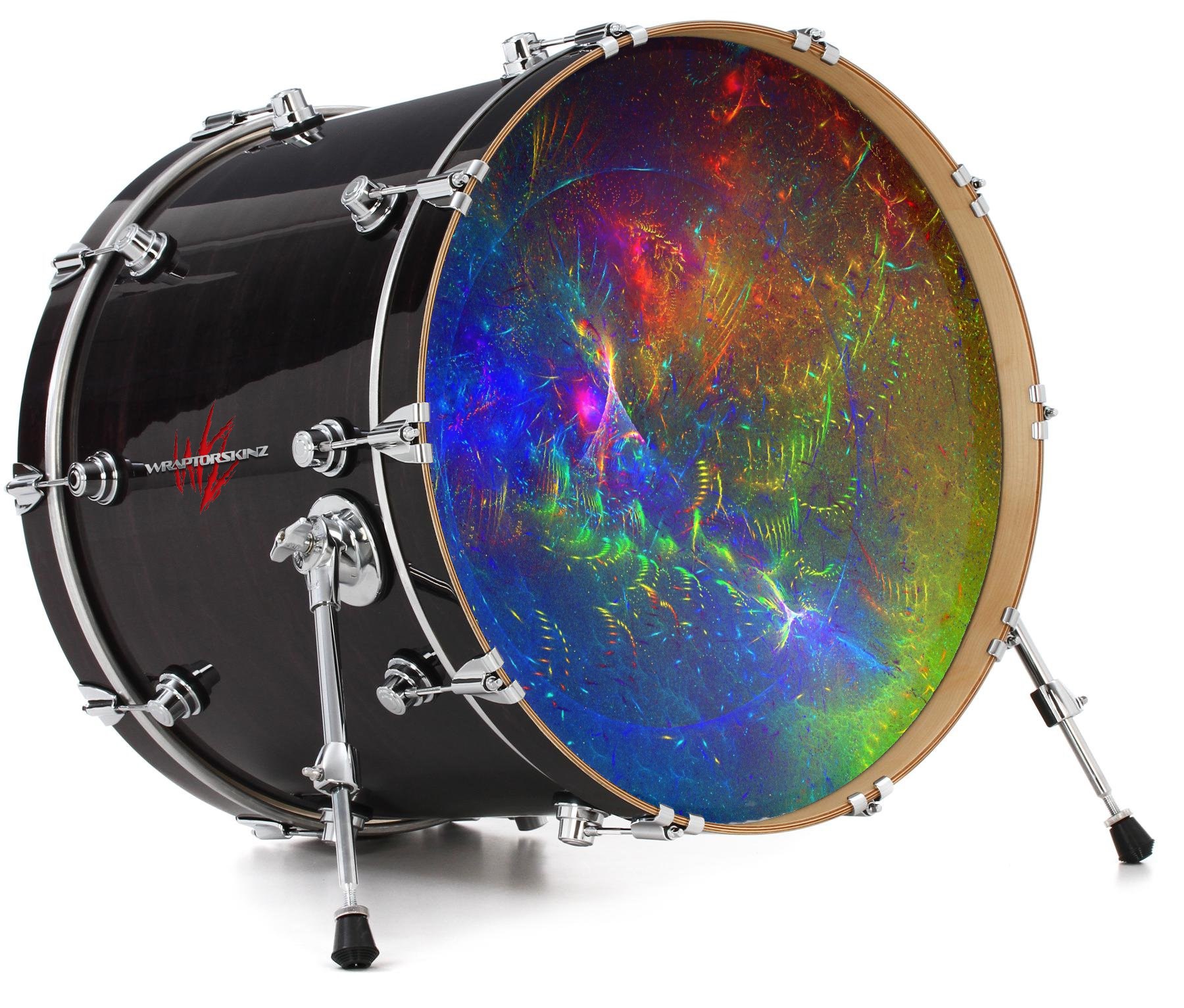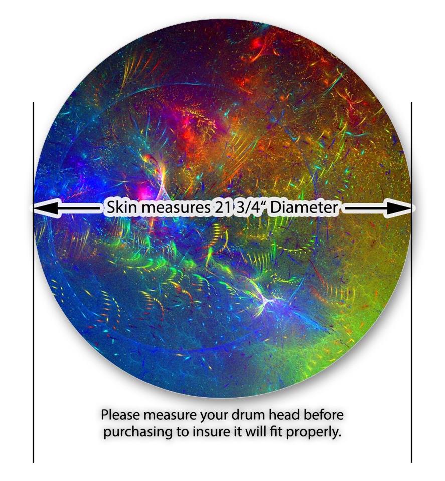 This design also available in other sizes. WraptorSkinz® skin wraps compatible with most kick drum heads. Printed using superb photo quality designs and vibrant colors printed with special fade resistant inks that last even in direct sun for years. WraptorSkinz are a composite three layer commercial grade materials vinyl. The bottom layer is a air release, grey block out removable adhesive that hides existing graphics on the drum head and is easily applied without air bubbles. The middle layer is a flexible vinyl printed with UV protected, fade resistant inks that deliver superb photo quality designs in vibrant colors. Finally, we bond a professional grade laminate over the entire skin adding a glossy protective finish.