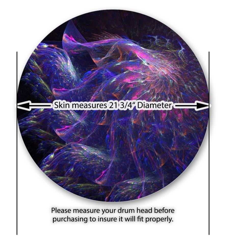 This design also available in other sizes. WraptorSkinz® skin wraps compatible with most kick drum heads. Printed using superb photo quality designs and vibrant colors printed with special fade resistant inks that last even in direct sun for years. WraptorSkinz are a composite three layer commercial grade materials vinyl. The bottom layer is a air release, grey block out removable adhesive that hides existing graphics on the drum head and is easily applied without air bubbles. The middle layer is a flexible vinyl printed with UV protected, fade resistant inks that deliver superb photo quality designs in vibrant colors. Finally, we bond a professional grade laminate over the entire skin adding a glossy protective finish.