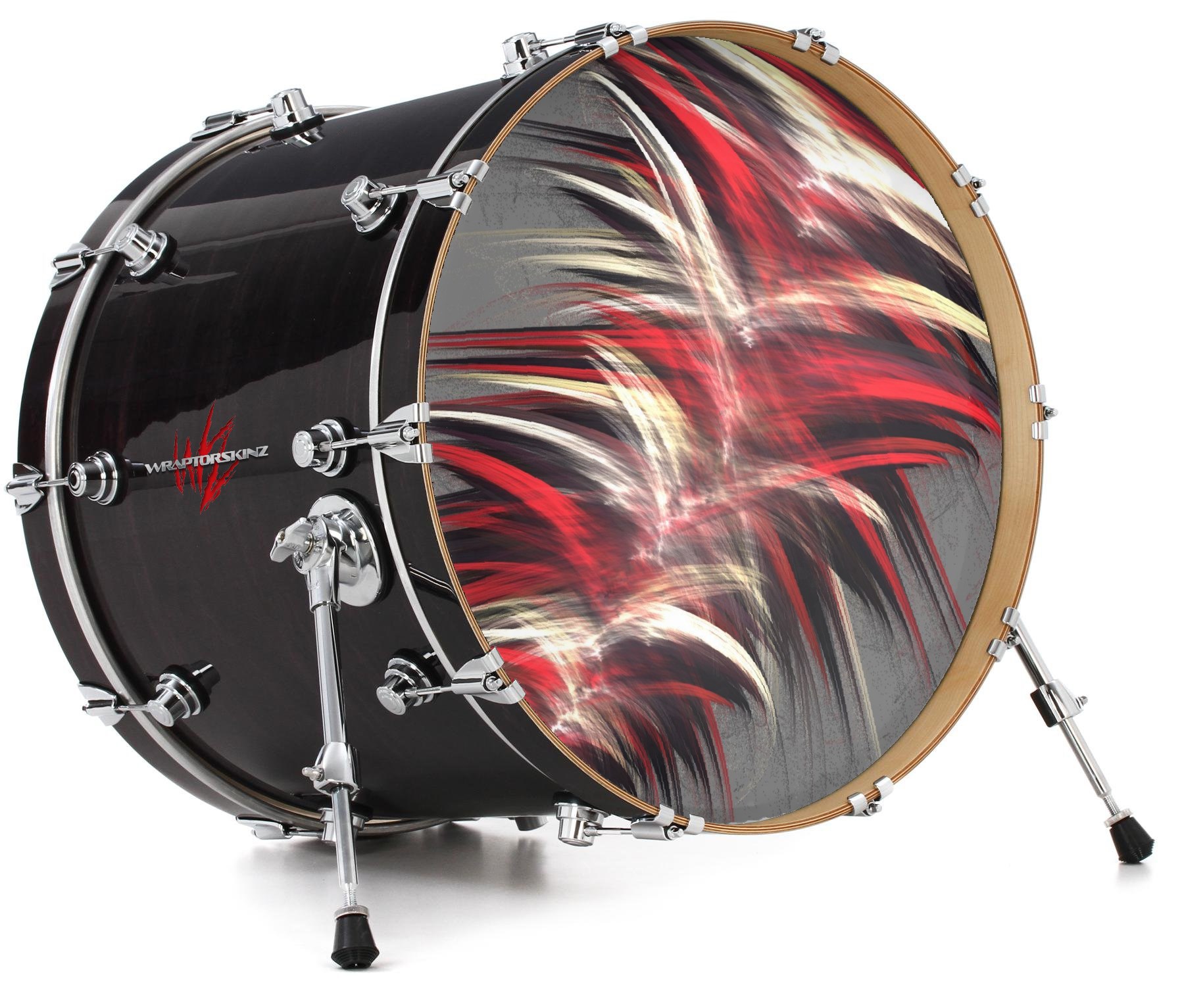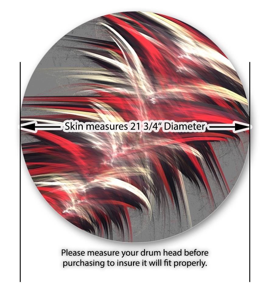 This design also available in other sizes. WraptorSkinz® skin wraps compatible with most kick drum heads. Printed using superb photo quality designs and vibrant colors printed with special fade resistant inks that last even in direct sun for years. WraptorSkinz are a composite three layer commercial grade materials vinyl. The bottom layer is a air release, grey block out removable adhesive that hides existing graphics on the drum head and is easily applied without air bubbles. The middle layer is a flexible vinyl printed with UV protected, fade resistant inks that deliver superb photo quality designs in vibrant colors. Finally, we bond a professional grade laminate over the entire skin adding a glossy protective finish.