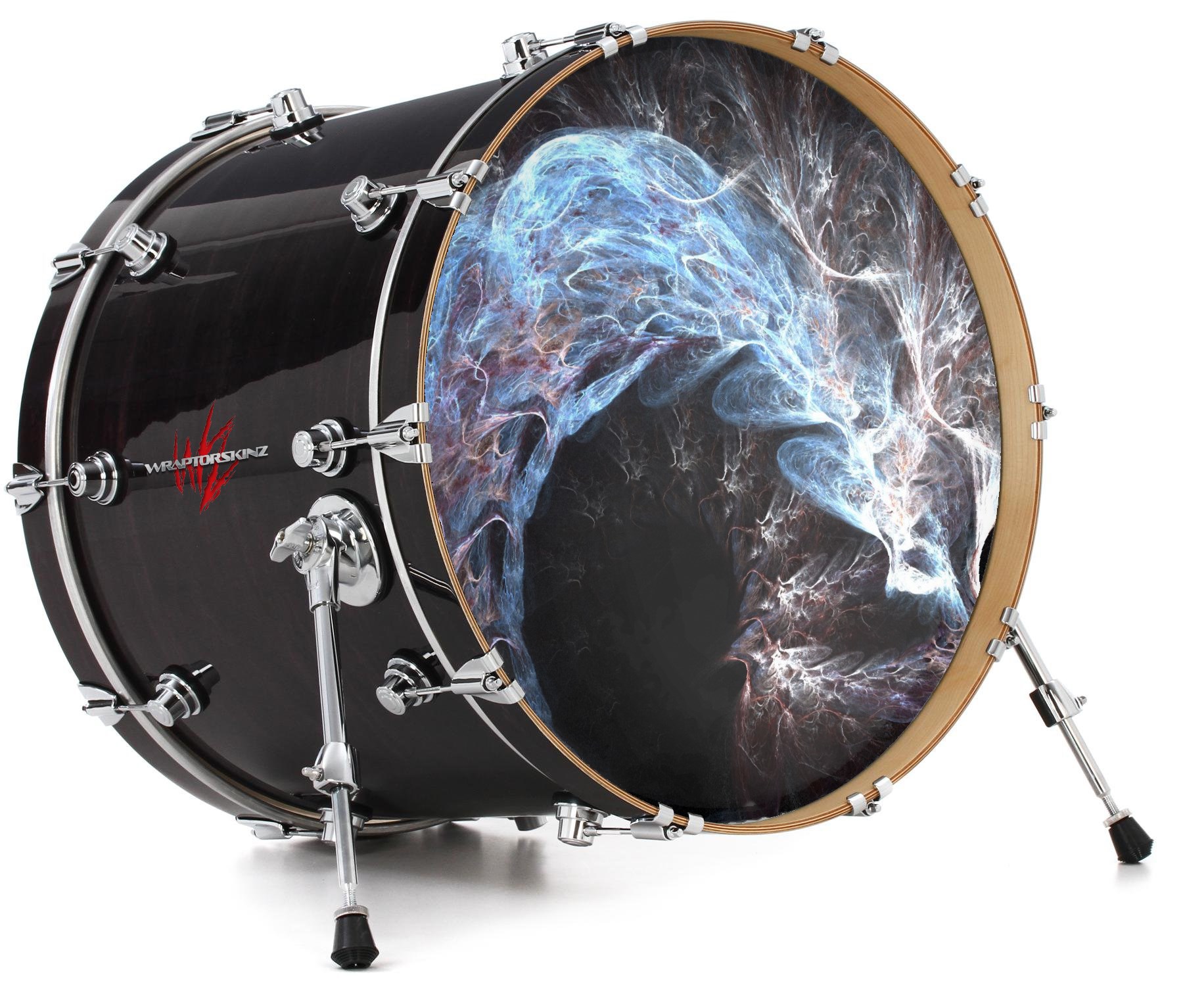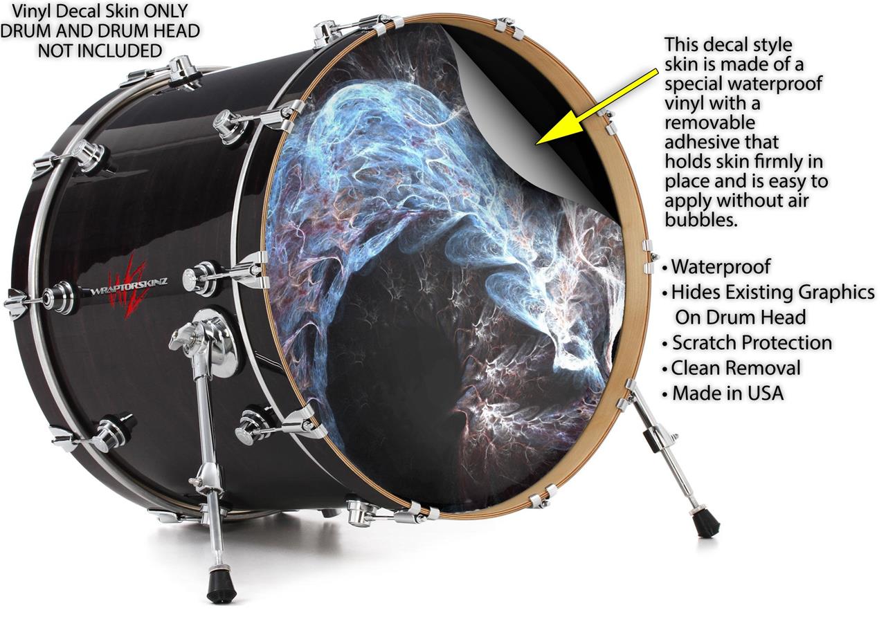 This design also available in other sizes. WraptorSkinz® skin wraps compatible with most kick drum heads. Printed using superb photo quality designs and vibrant colors printed with special fade resistant inks that last even in direct sun for years. WraptorSkinz are a composite three layer commercial grade materials vinyl. The bottom layer is a air release, grey block out removable adhesive that hides existing graphics on the drum head and is easily applied without air bubbles. The middle layer is a flexible vinyl printed with UV protected, fade resistant inks that deliver superb photo quality designs in vibrant colors. Finally, we bond a professional grade laminate over the entire skin adding a glossy protective finish.