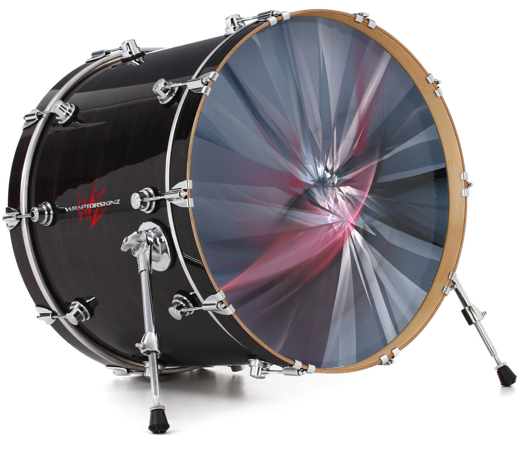 This design also available in other sizes. WraptorSkinz® skin wraps compatible with most kick drum heads. Printed using superb photo quality designs and vibrant colors printed with special fade resistant inks that last even in direct sun for years. WraptorSkinz are a composite three layer commercial grade materials vinyl. The bottom layer is a air release, grey block out removable adhesive that hides existing graphics on the drum head and is easily applied without air bubbles. The middle layer is a flexible vinyl printed with UV protected, fade resistant inks that deliver superb photo quality designs in vibrant colors. Finally, we bond a professional grade laminate over the entire skin adding a glossy protective finish.