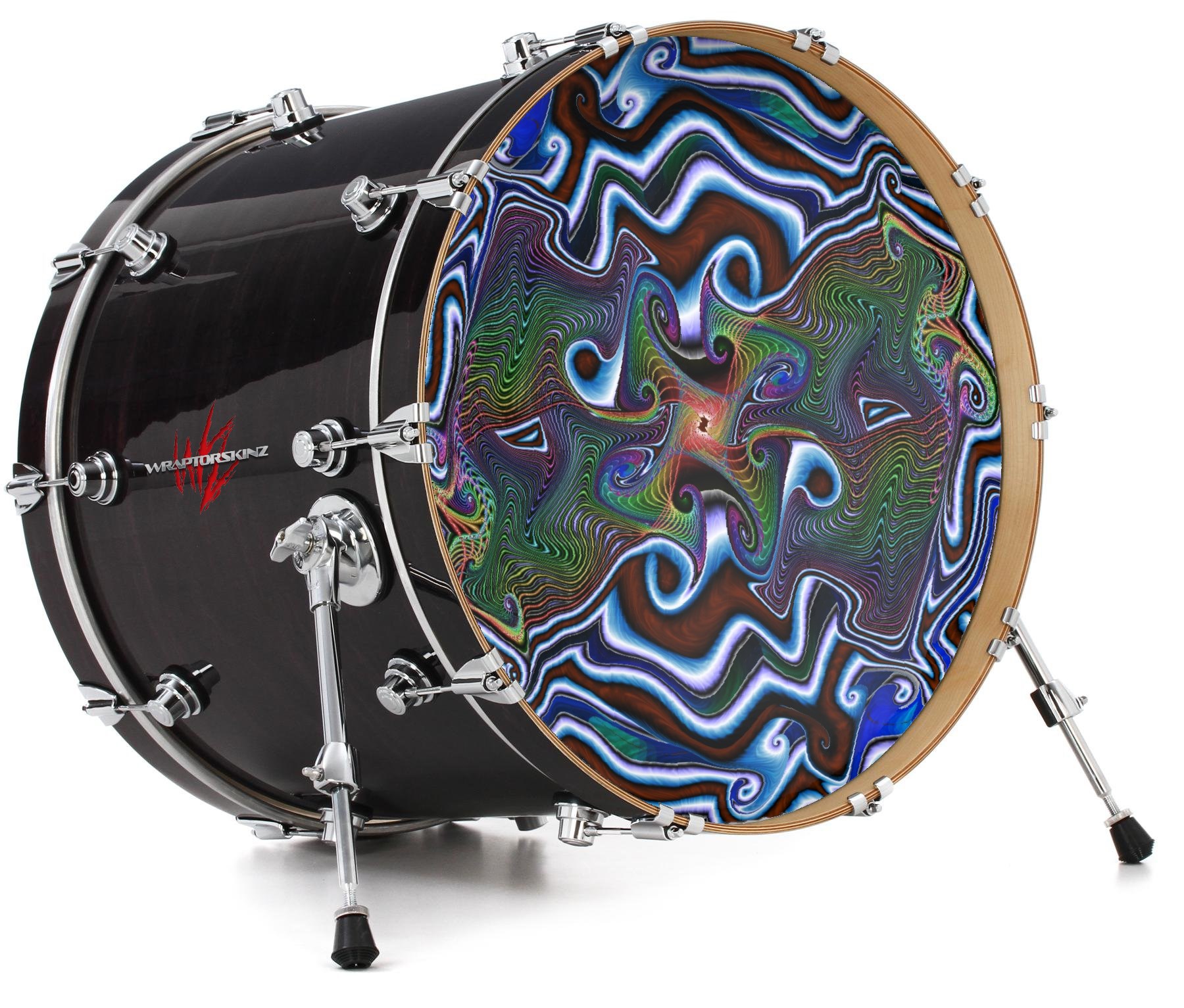 This design also available in other sizes. WraptorSkinz® skin wraps compatible with most kick drum heads. Printed using superb photo quality designs and vibrant colors printed with special fade resistant inks that last even in direct sun for years. WraptorSkinz are a composite three layer commercial grade materials vinyl. The bottom layer is a air release, grey block out removable adhesive that hides existing graphics on the drum head and is easily applied without air bubbles. The middle layer is a flexible vinyl printed with UV protected, fade resistant inks that deliver superb photo quality designs in vibrant colors. Finally, we bond a professional grade laminate over the entire skin adding a glossy protective finish.