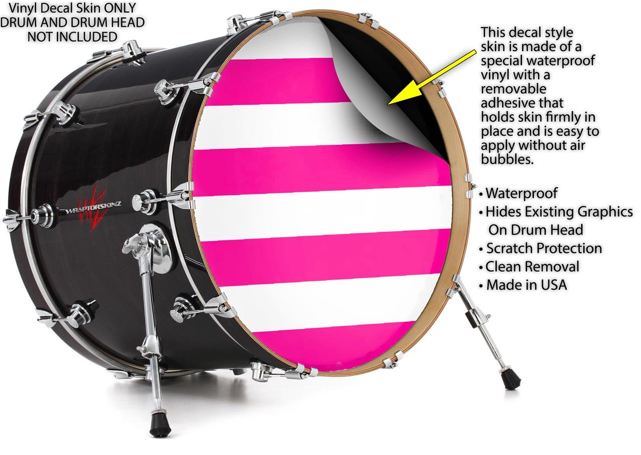 Vinyl Decal Skin Wrap for 22" Bass Kick Drum Head Psycho Stripes Hot Pink and White - DRUM HEAD NOT INCLUDED
