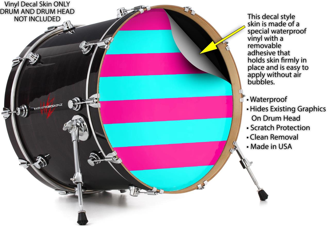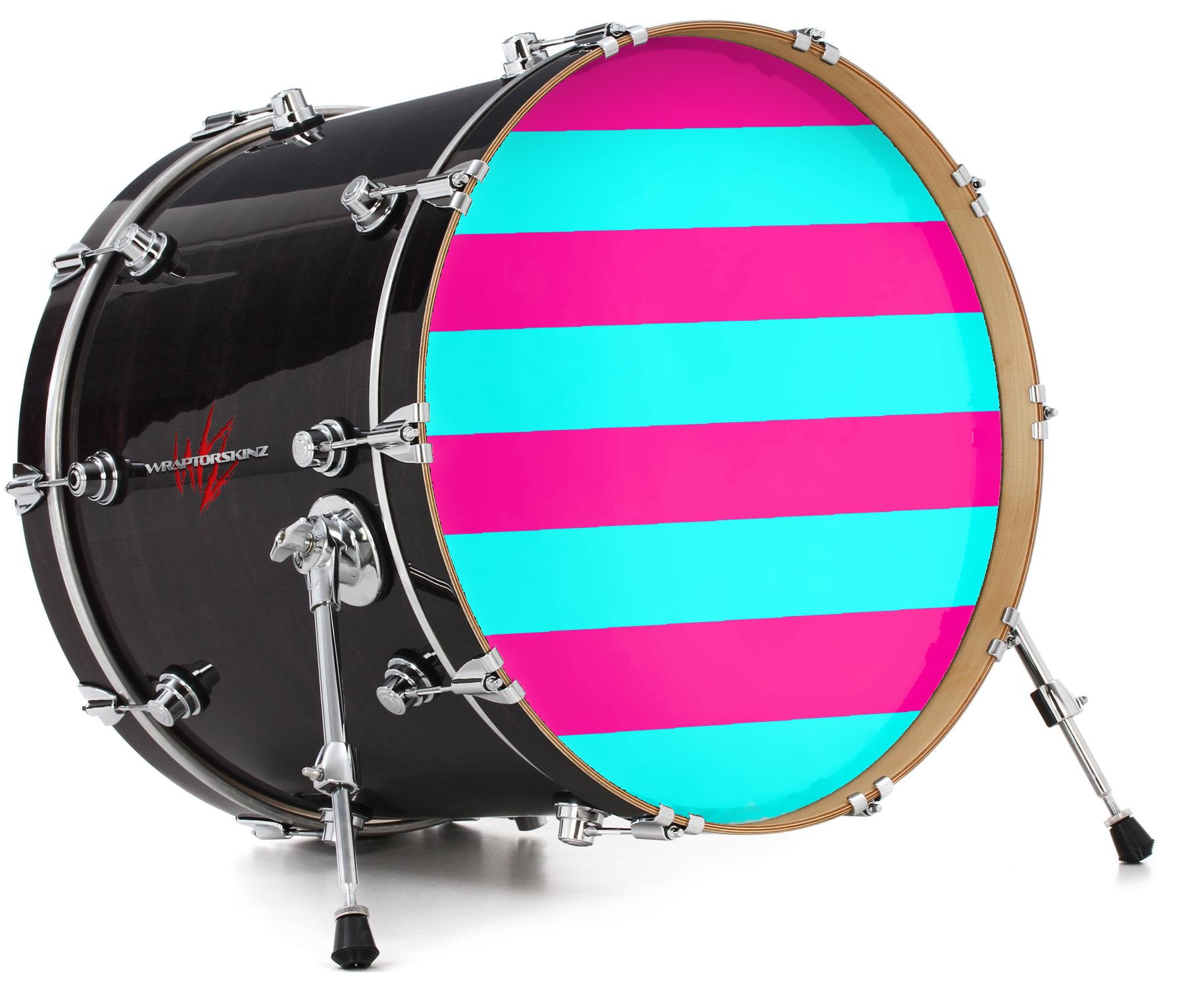 Vinyl Decal Skin Wrap for 22" Bass Kick Drum Head Psycho Stripes Neon Teal and Hot Pink - DRUM HEAD NOT INCLUDED