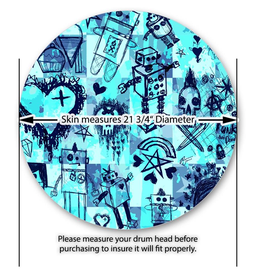 This design also available in other sizes. WraptorSkinz® skin wraps compatible with most kick drum heads. Printed using superb photo quality designs and vibrant colors printed with special fade resistant inks that last even in direct sun for years. WraptorSkinz are a composite three layer commercial grade materials vinyl. The bottom layer is a air release, grey block out removable adhesive that hides existing graphics on the drum head and is easily applied without air bubbles. The middle layer is a flexible vinyl printed with UV protected, fade resistant inks that deliver superb photo quality designs in vibrant colors. Finally, we bond a professional grade laminate over the entire skin adding a glossy protective finish.