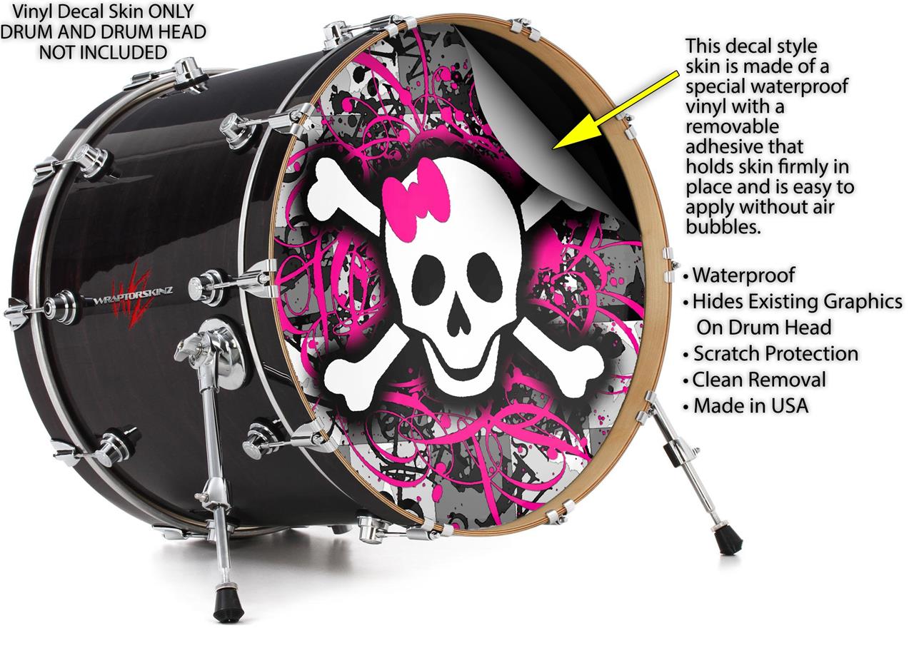Vinyl Decal Skin Wrap for 22" Bass Kick Drum Head Splatter Girly Skull - DRUM HEAD NOT INCLUDED