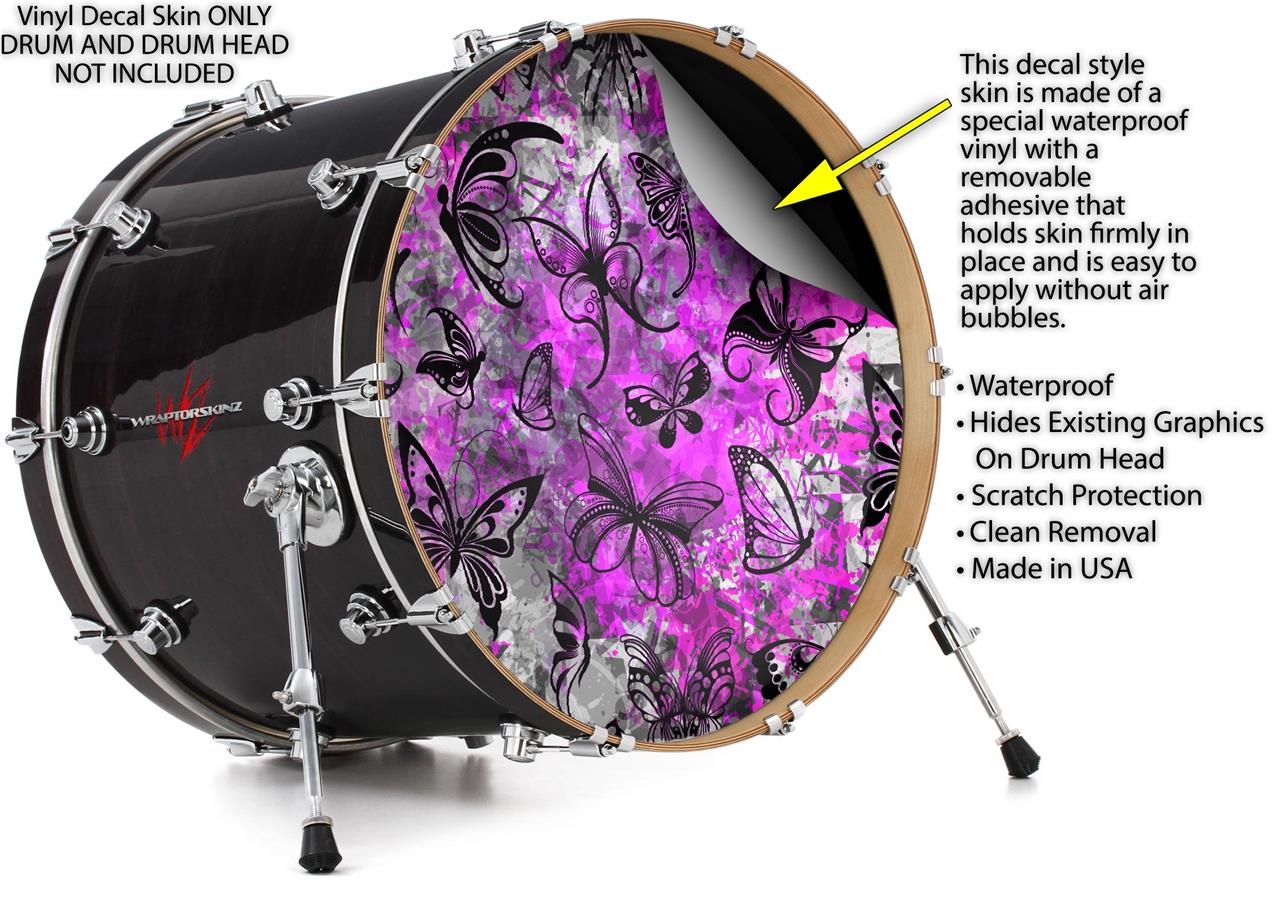 Vinyl Decal Skin Wrap for 22" Bass Kick Drum Head Butterfly Graffiti - DRUM HEAD NOT INCLUDED